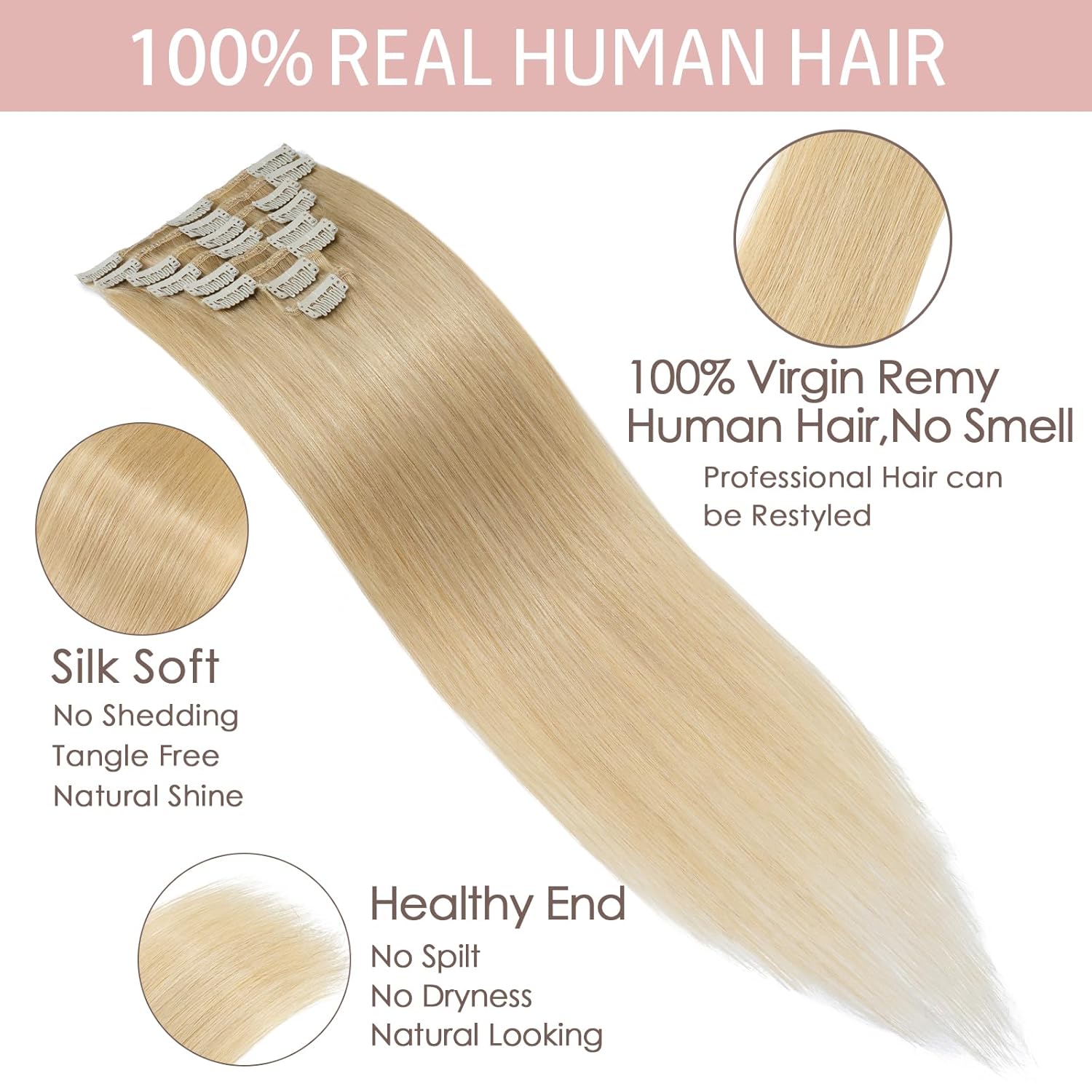 - 【100% echtes haare, natürlicher und komfortabel】 clip in extensions sind aus hochwertigem brasilianischem remy echthaar, seidig glatt mit extra glanz und ohne verwicklungen. die dicke ist von kopf bis schwanz gleich. Dauerhafte extensions echthaar