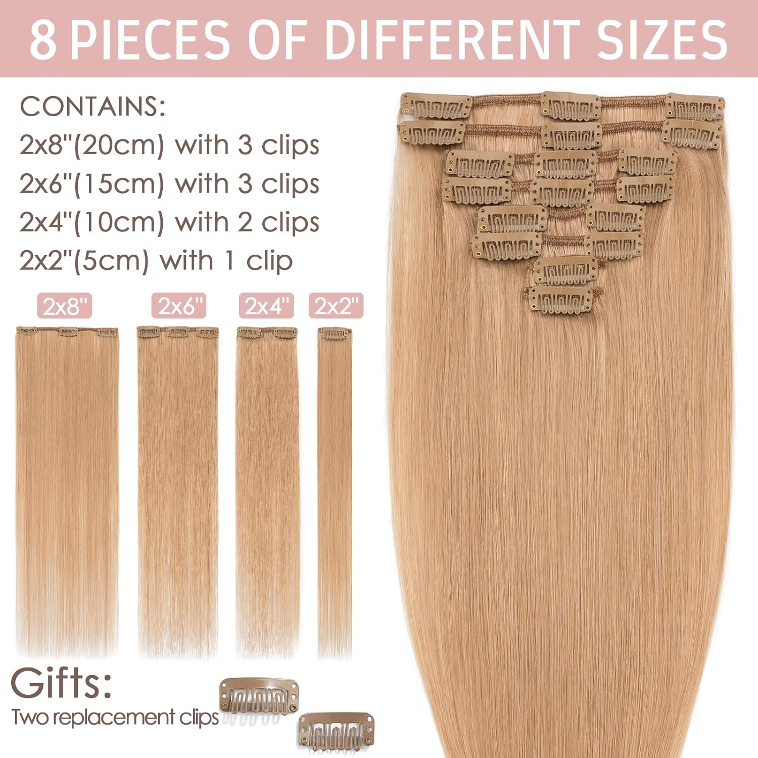 • 【Mehr Auswahl, mehr Vielfalt】Silk-co hair extensions clip in, 8 Stück mit 18 Clips pro Set. Je nach Länge wiegt das Haar etwa 45-80g. Um Ihr Haar zu verdichten, empfehlen wir 1-2 Packungen; für einen vollen Kopf empfehlen wir 2-3 Packungen. Wir