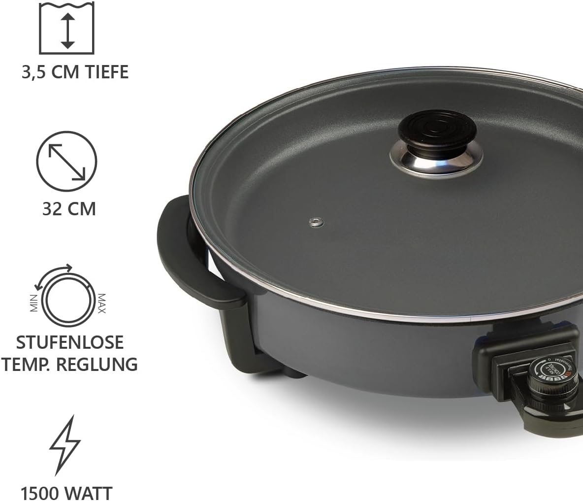 - SCHNELLE AUFHEIZZEIT: Die 1500 Watt Heizleistung sorgen für ein schnelles Erreichen der gewünschten Temperatur. Darüber hinaus sorgt die Antihaftbeschichtung für kein leichtes Anbrennen Ihrer Speisen.