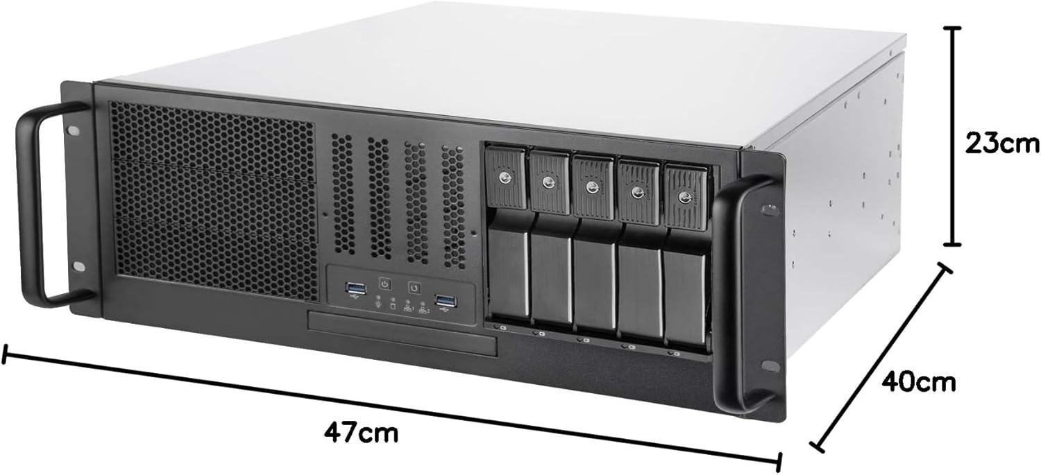 - Drei 5, 25-Zoll-Laufwerkeinschübe für eine flexiblere Installation von 5, 25-Zoll-Geräten; Vorgebohrte Montagelöcher zur einfachen Installation von Gleitschienen