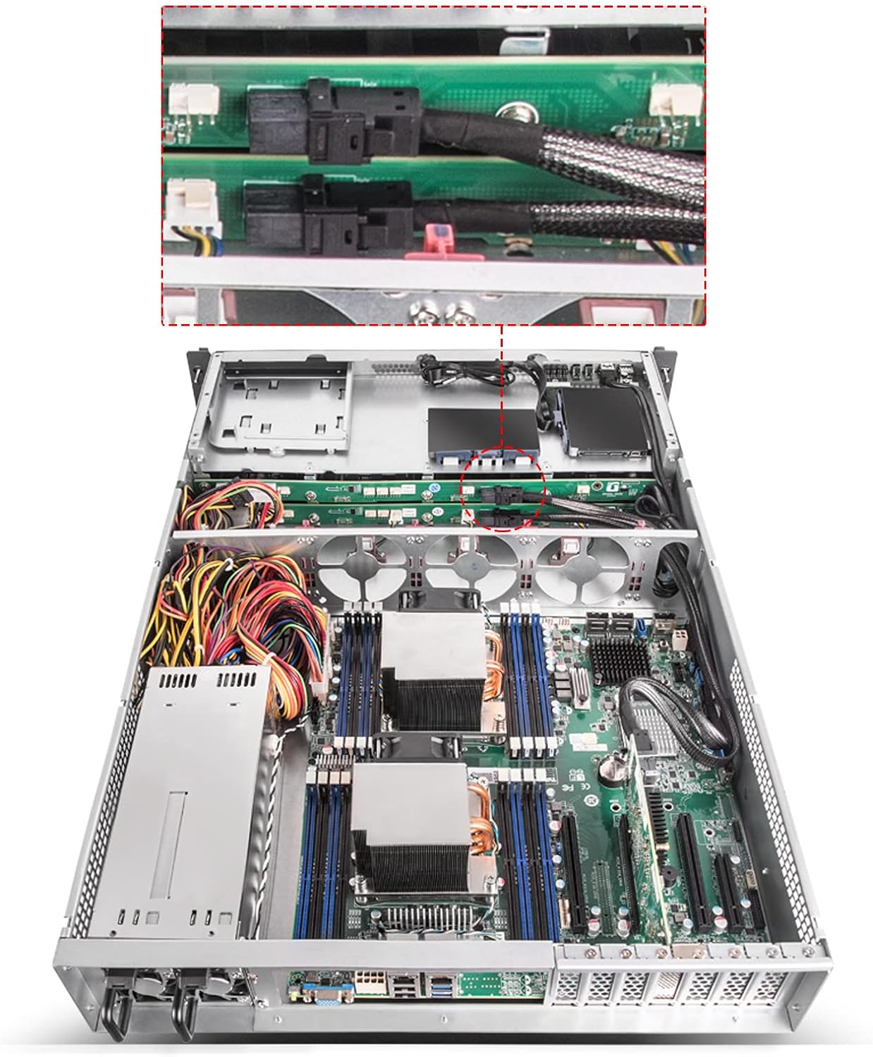 - Backplane unterstützt 8-Port-SAS/SATA-Laufwerke und 12-Gb/s-Mini-SAS-HD-SFF-8643 + SGPIO