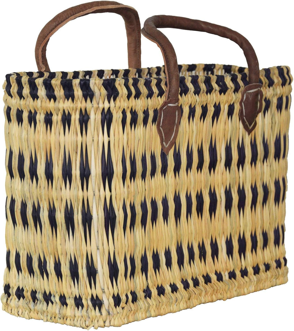 - Die Korbtasche wurde in Marokko aus Palmgras handgefertigt. Die Tasche verfügt über einen Leder-Trageriemen, der fest mit dem Korbgeflecht vernäht und vernietet ist.