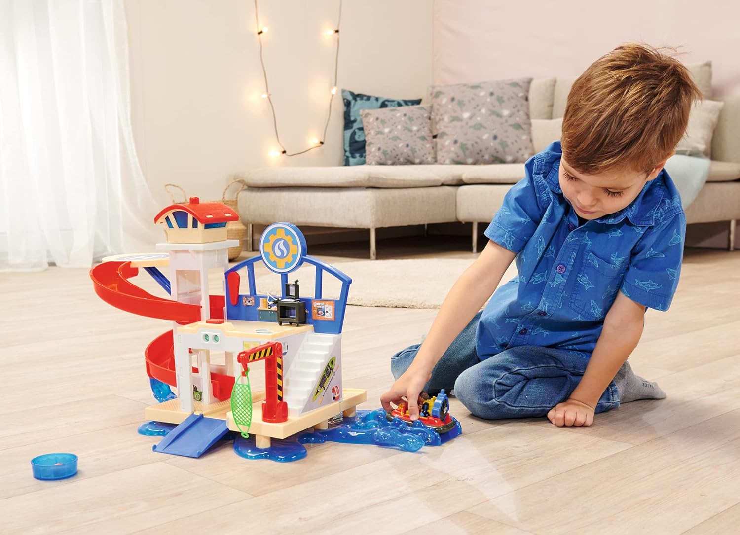 - Mit Rutsche und Sound - über die Rutsche können die Feuerwehrleute schnell auf die unterste Plattform gelangen und von dort aus den Kran mit dem Fangnetz bedienen. Die Wasserwacht verfügt über zwei verschiedene tolle Sounds, die per Knopfdruck eingeschaltet werden können.