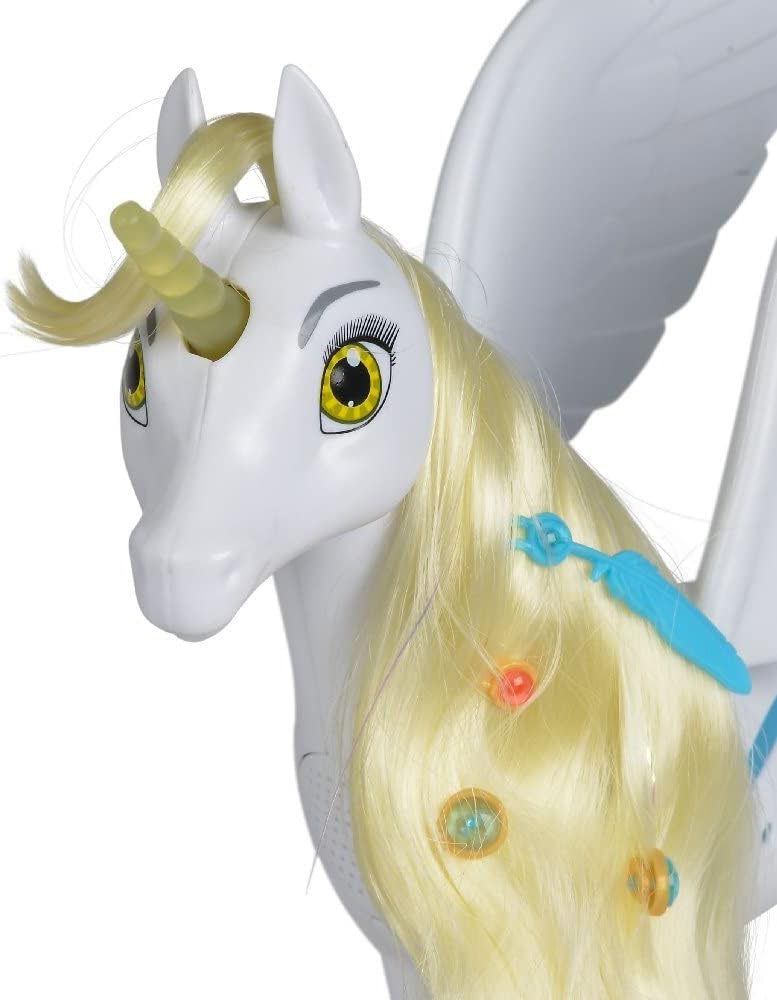 - Bewegliche Flügel - das weisse Einhorn besitzt bewegliche Flügel, die mit der Hand bewegt werden. So können die Kinder mit ihrem Einhorn durch das Kinderzimmer fliegen