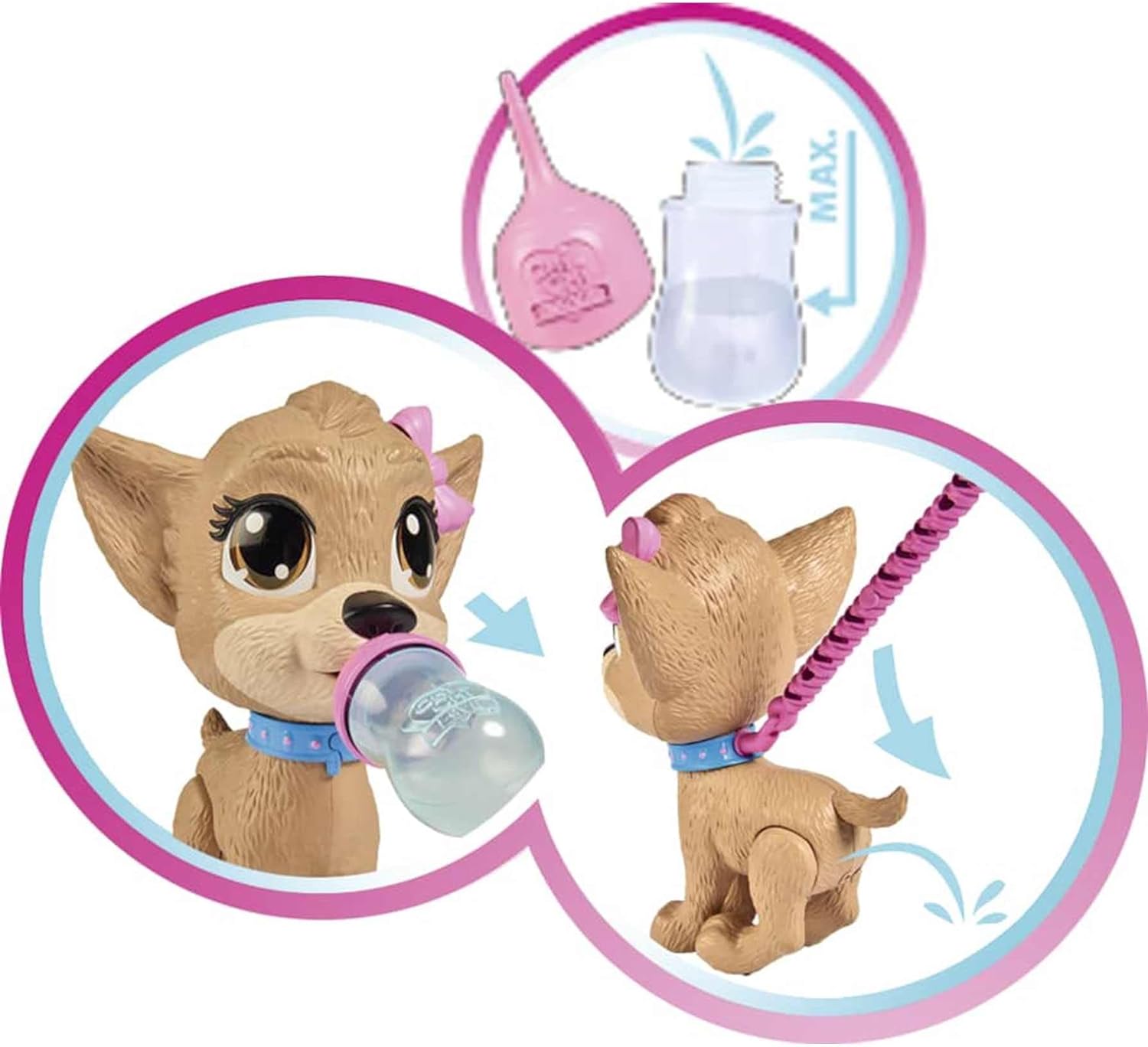 • Geben Sie Ihrem Chi Love Pipi die Flasche mit Wasser und nehmen Sie sie spazieren