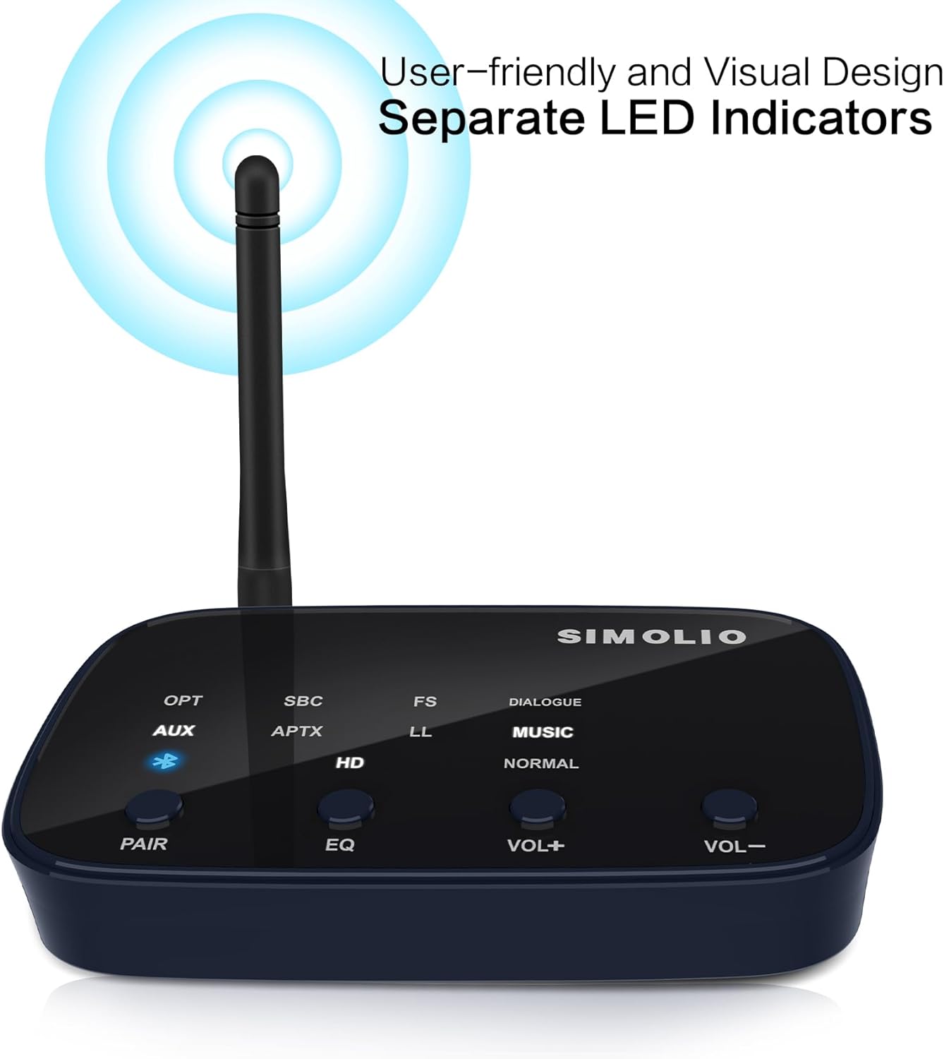 SIMOLIO Bluetooth Empfänger für Stereoanlage, Bluetooth 5.0 Receiver HiFi mit Cinch/3,5mm AUX/optisc