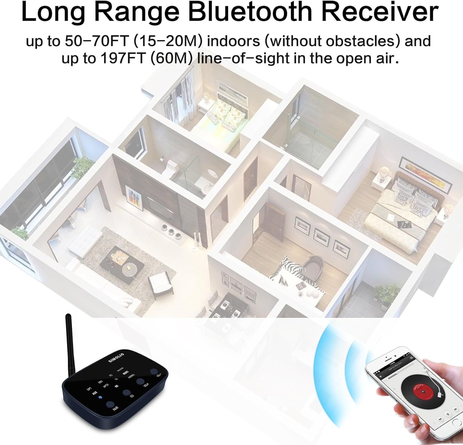 • 【Lange Reichweite】Mit einer externen Antenne und Bluetooth Class I Technologie kann der SIMOLIO JH-211 Bluetooth Audio Adapter eine Reichweite von bis zu 50-70FT (15-20M) in Innenräumen (ohne Hindernisse) und bis zu 197FT (60M) Sichtlinie im Freien