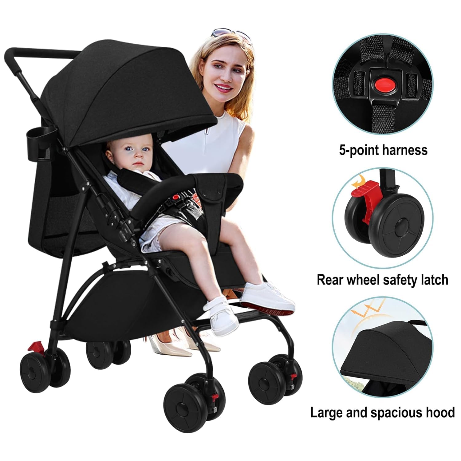 - 【Praktisch】: Der Sitz ist geräumig und tief, mit 5-Punkt-Sicherheitsgurten. Die Sicherheitsbarriere kann von beiden Seiten entfernt werden, so dass Sie Ihr Kind leicht aus dem Kinderwagen nehmen können. Und es ist auch sehr leicht zu reinigen.