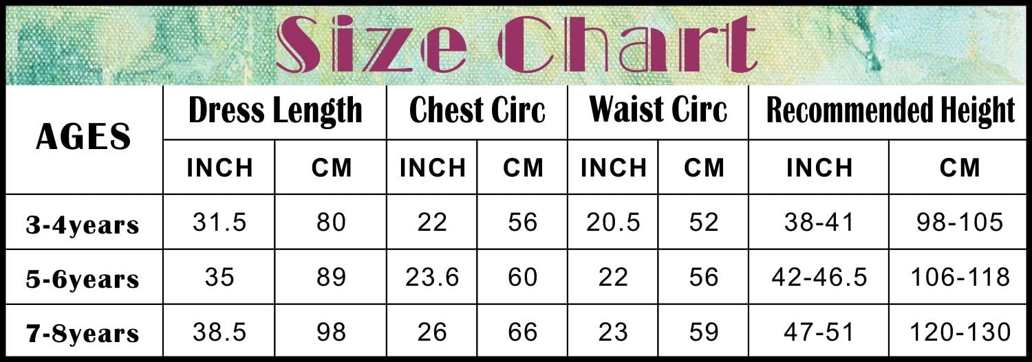 - Für dieses mittelalterliche Prinzessinnenkleid sind 3 Grössen erhältlich: 3–4 Jahre, empfohlen für eine Körpergrösse von 98–104 cm, 5–6 Jahre, empfohlen für eine Grösse von 110–116 cm, 7–8 Jahre, empfohlen für eine Grösse von