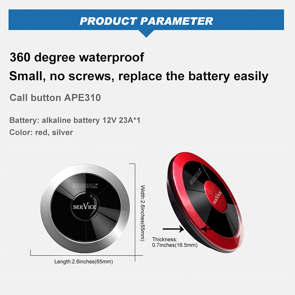 SINGCALL Rufsystem von Küche, 360°Rund umwasserdicht,Piepser mit Einem Knopf (APE310), es könnte Nic