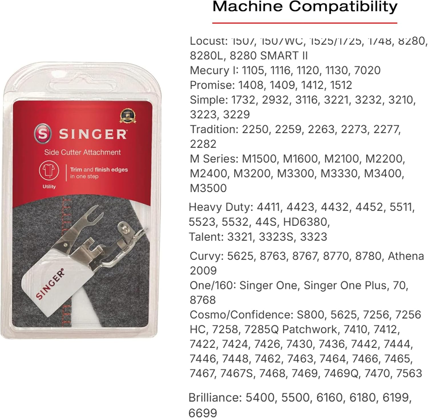- Singer Nähmaschinen-Seitenschneider: Der Seitenschneider-Aufsatz schneidet den Stoff während Sie eine Naht nähen. Nähen Sie Nähte und Nahtabschlüsse gleichzeitig.