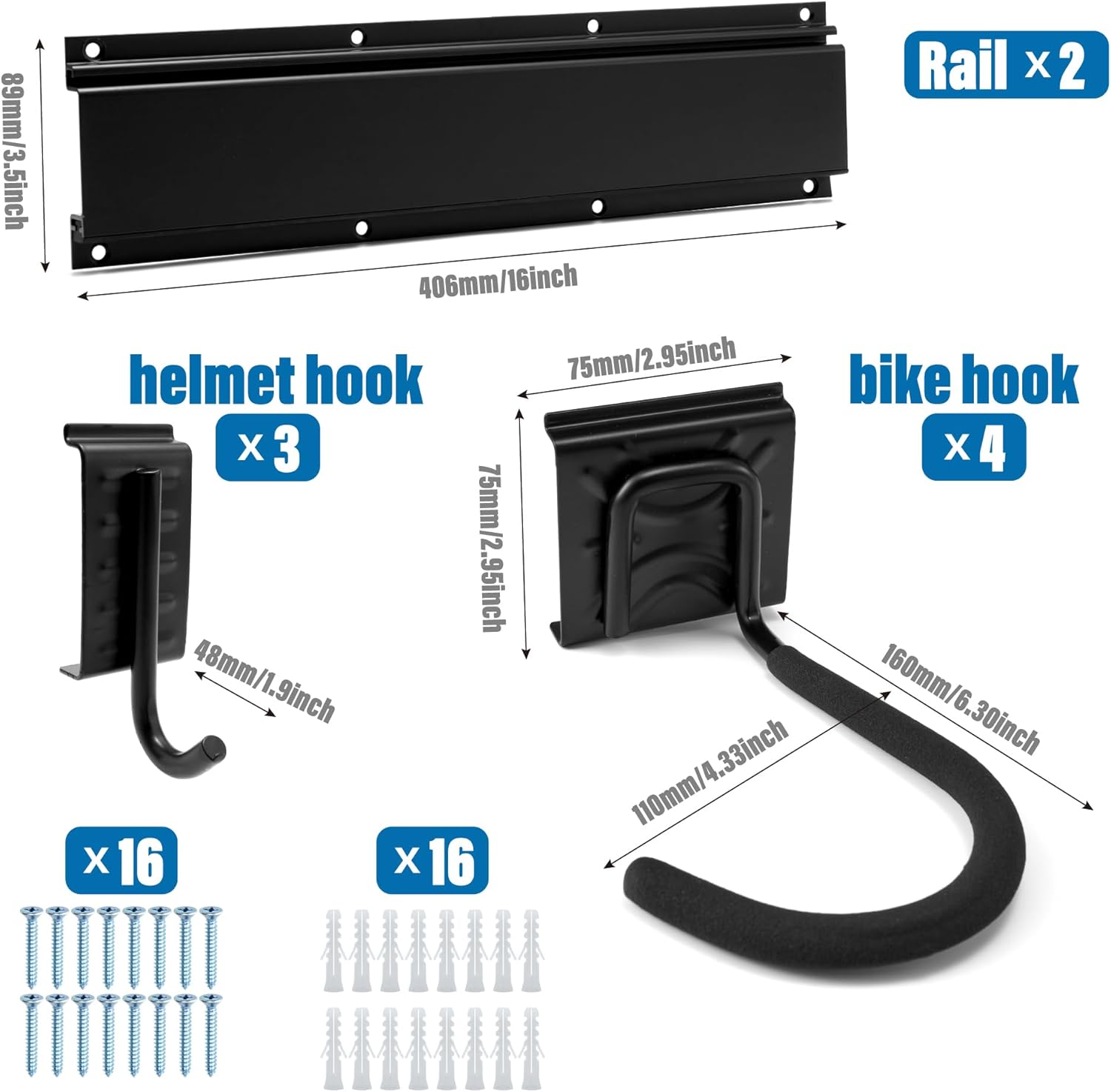 Variante: 4 Fahrräde -16Zoll - 2 Schienen+3 Helmhaken