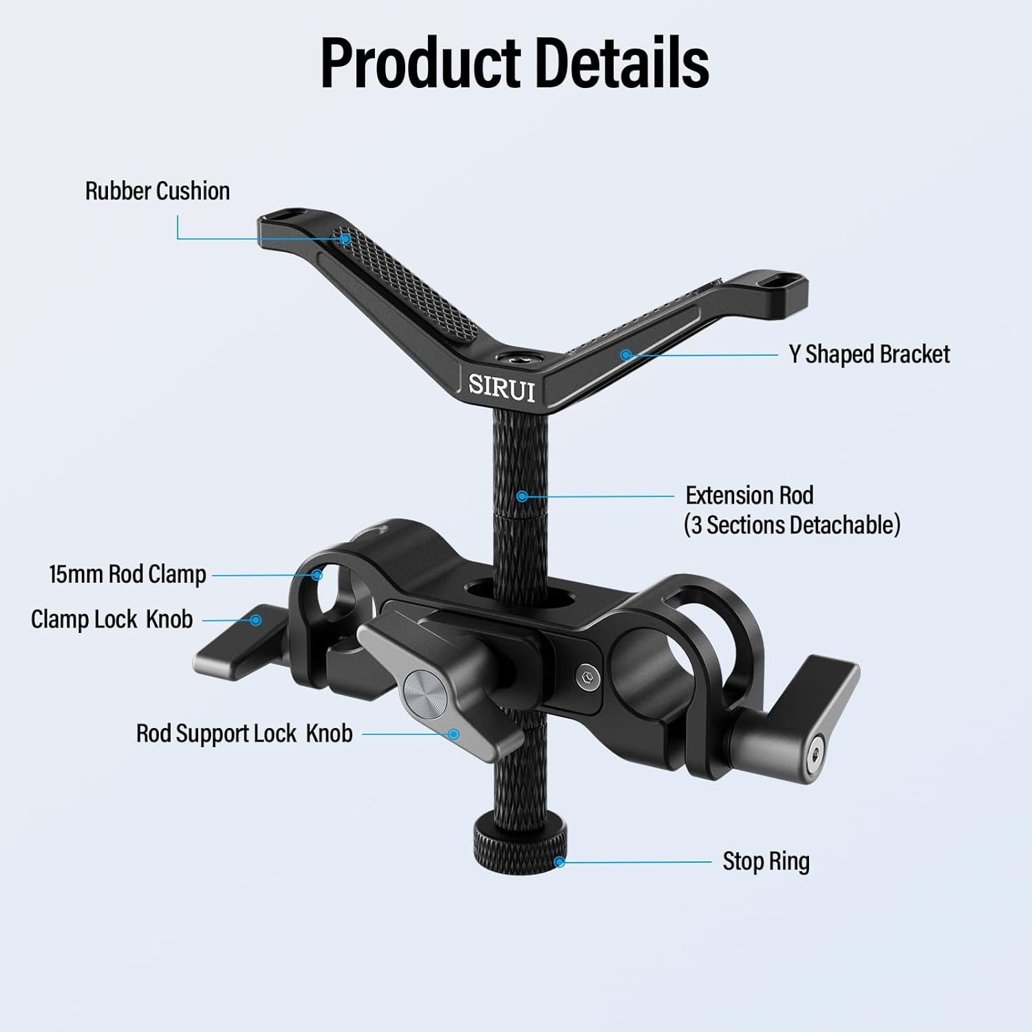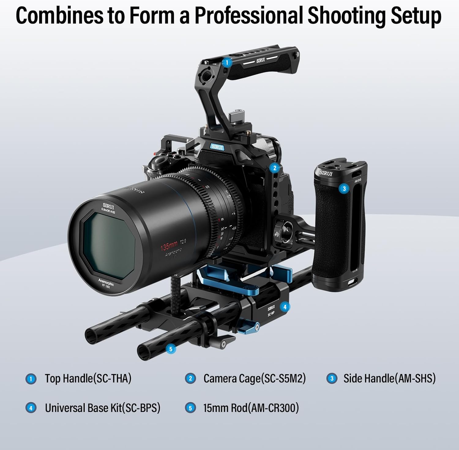 • Kompatibel mit zusätzlichem Zubehör: Die Halterung ist mit allen gängigen 15-mm-Schienenstangensystemen kompatibel und lässt sich nahtlos mit einer Vielzahl von Sirui-Zubehörteilen kombinieren, wie dem AM-CR300, SC-VM-A, AM-QA-LR, SC-BP und