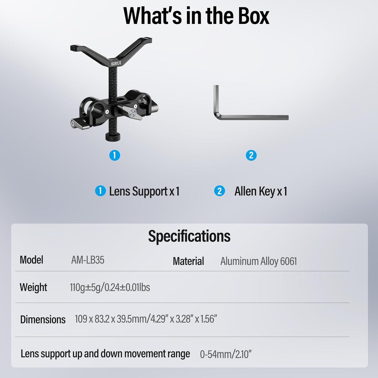 • Y-förmige Objektivhalterung für Objektive: Die SIRUI AM-LB35 Kameraobjektivhalterung ist speziell für robuste Teleobjektive mit einem Durchmesser von 50mm bis 140mm entwickelt. Sie sorgt für eine sichere und stabile Unterstützung, um Verwacklungen