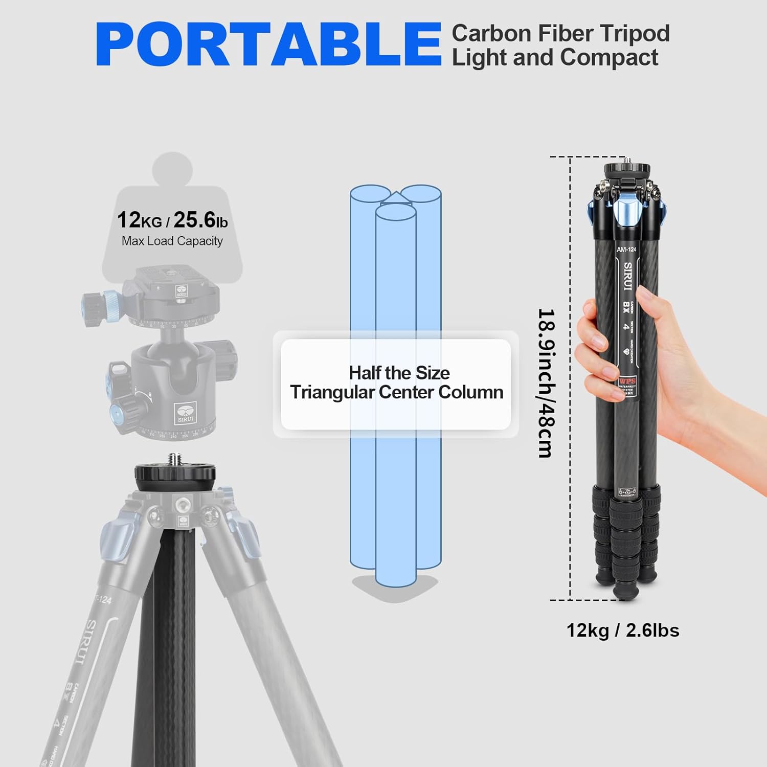 - Kohlefaser-Konstruktion – leichte, aber starke Kohlefaser-Abschnitte bieten ultimative Stabilität für Ihre Kamera. Die grossen Beindurchmesser (26,5 mm) erhöhen die Festigkeit der Karbonschichten. Das Gesamtgewicht beträgt nur 1,2 kg, aber maximale