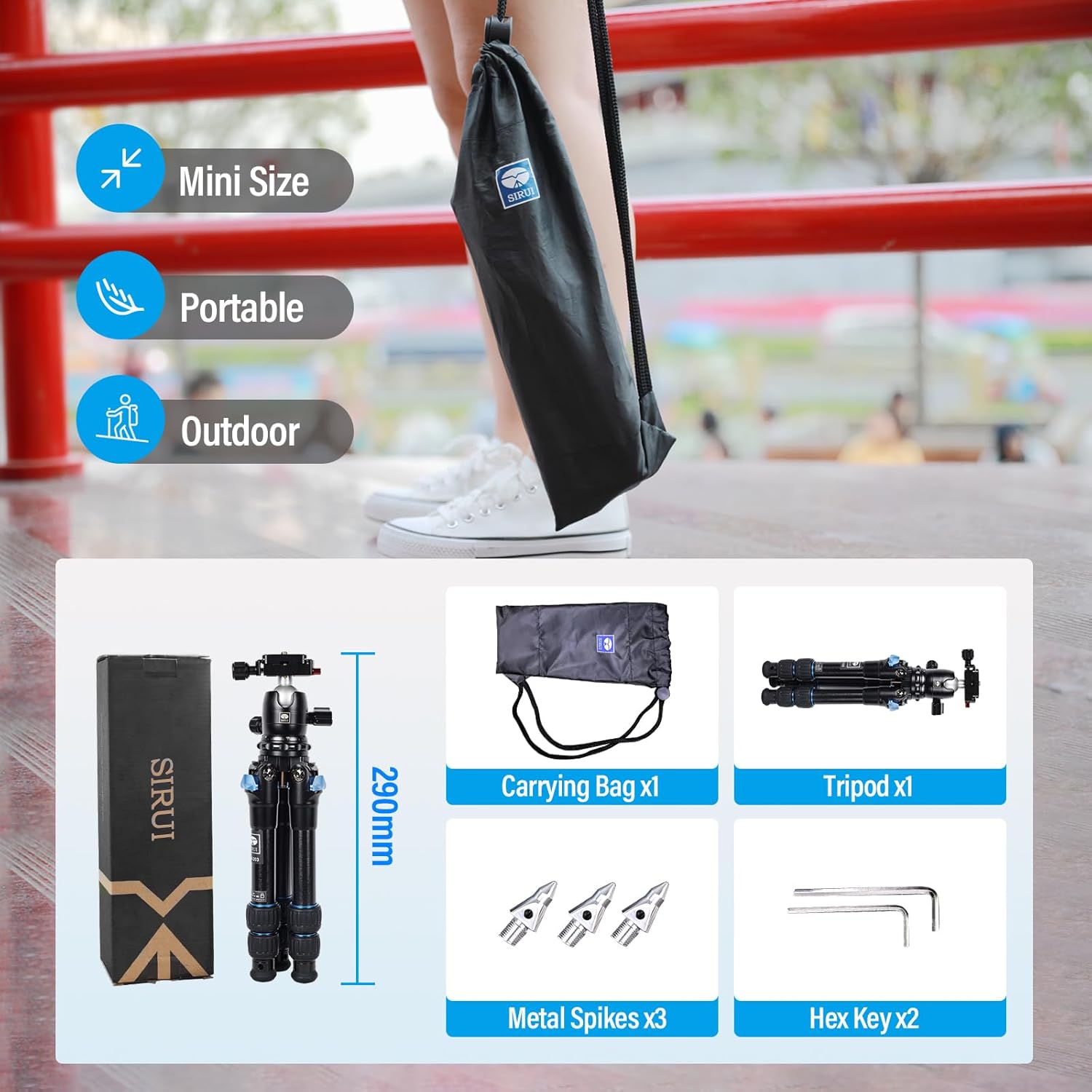 - 【Leicht und Kompakt】SIRUI AM203+B00K Aluminium Ministativ zeichnet sich durch seine Tragbarkeit aus. Es wiegt nur 0,76 kg und misst im zusammengeklappten Zustand nur 29 cm. Dank des Designs ohne Mittelsäule sind die Stativbeine sehr kompakt. Es ist