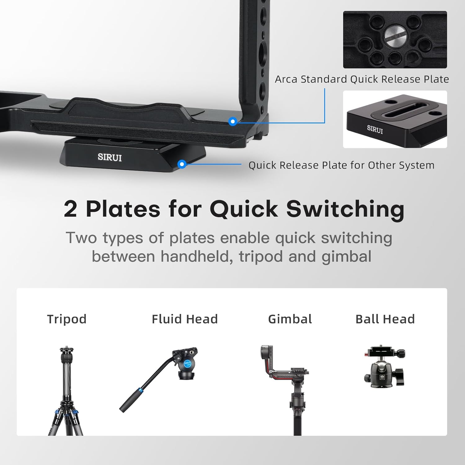 - 【Quick Switching】Zwei Arten von Schnellwechselplatten sind für den schnellen Wechsel zwischen Handheld-, Stativ- und Gimbal-Modus enthalten.