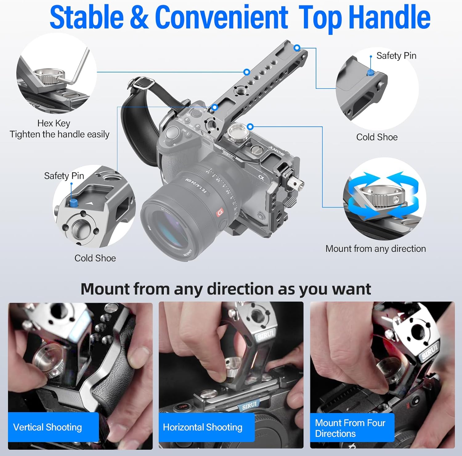 - Leichtes Tragen: Das hohle Design reduziert das Gewicht des Käfigs weiter und macht ihn ideal für schnelle "Run-and-Gun"-Aufnahmen.