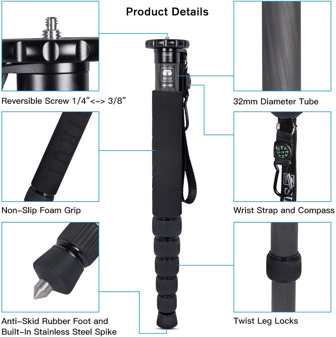 - Lieferumfang: SIRUI AM-326M Einbeinstativ Carbon, Handschlaufe, Minikompass & Karabiner