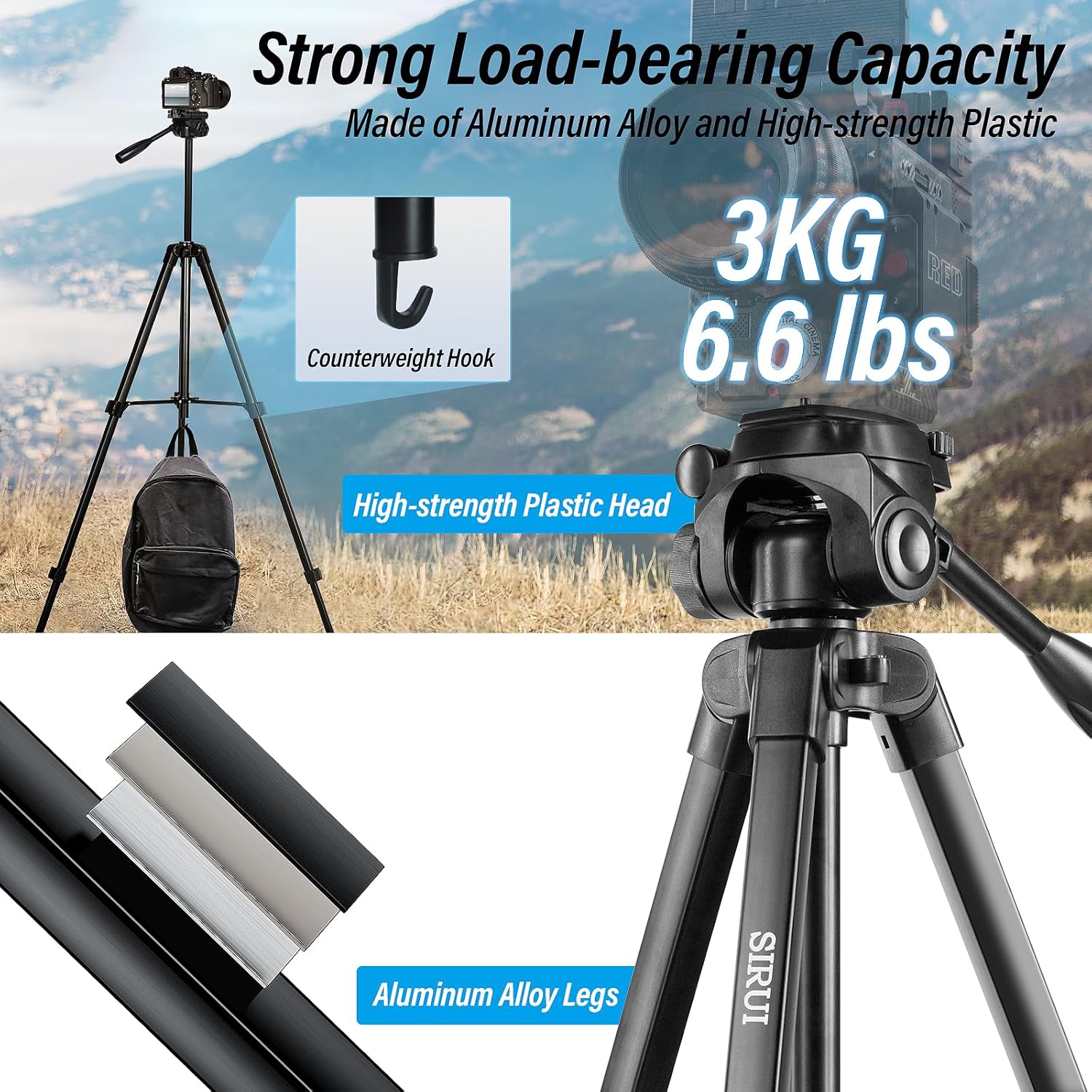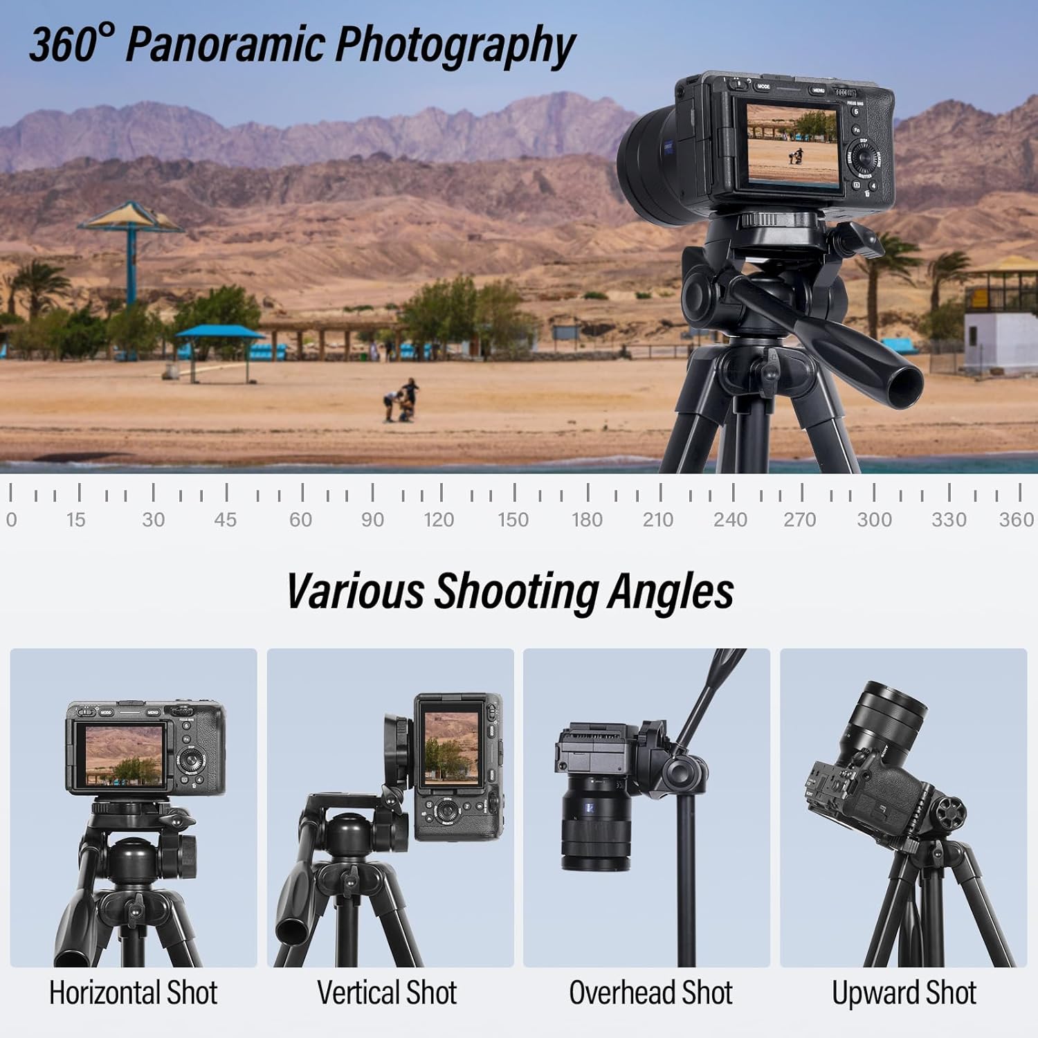 - Stabiles Reisestativ: Dieses Stativ für Kameras und Handys besteht aus haltbarem technischen Kunststoff und einer leichten Aluminiumlegierung, die für Robustheit ohne zusätzliche Masse sorgt. Es bleibt auch bei leichtem Wind im Freien stabil und