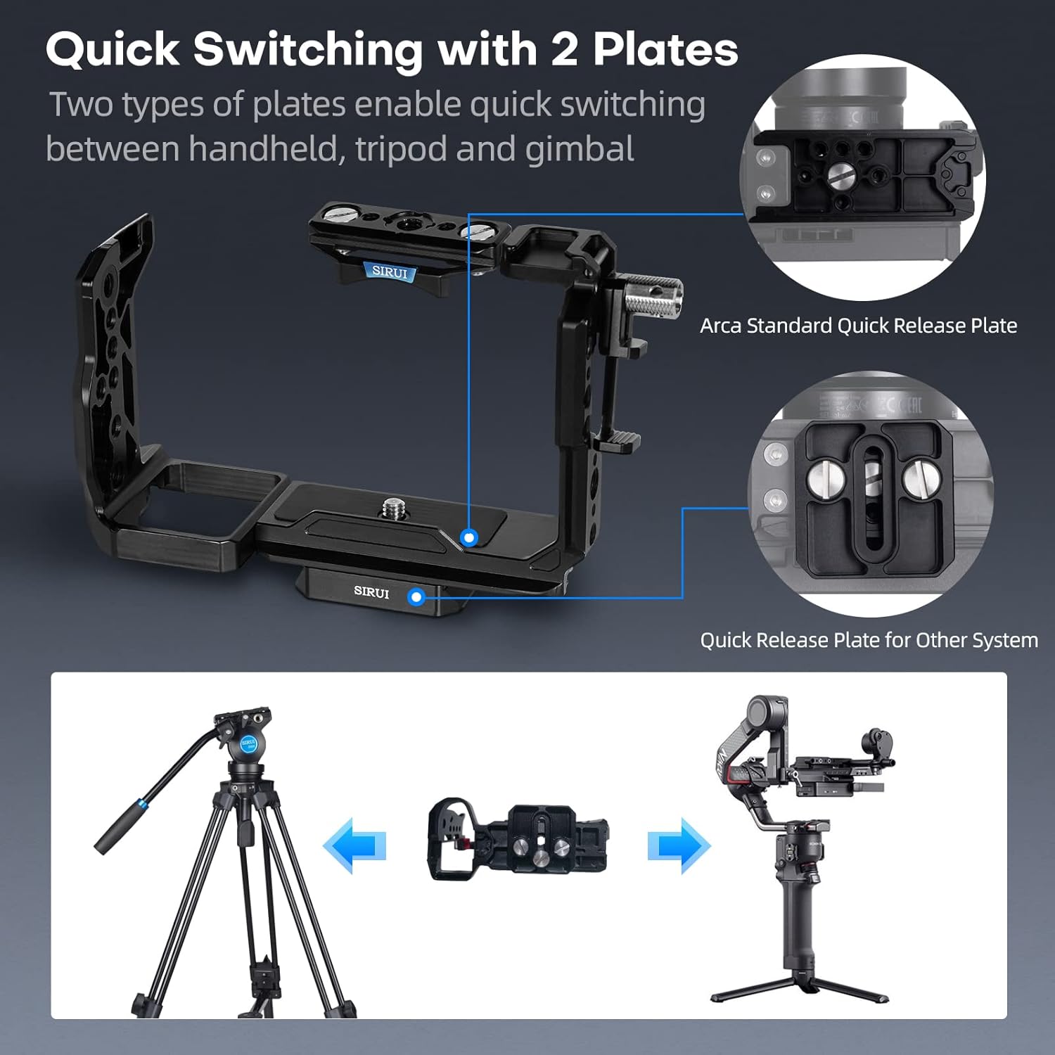 - 【Quick Switching】Zwei Arten von Schnellwechselplatten sind für den schnellen Wechsel zwischen Handheld-, Stativ- und Gimbal-Modus enthalten.