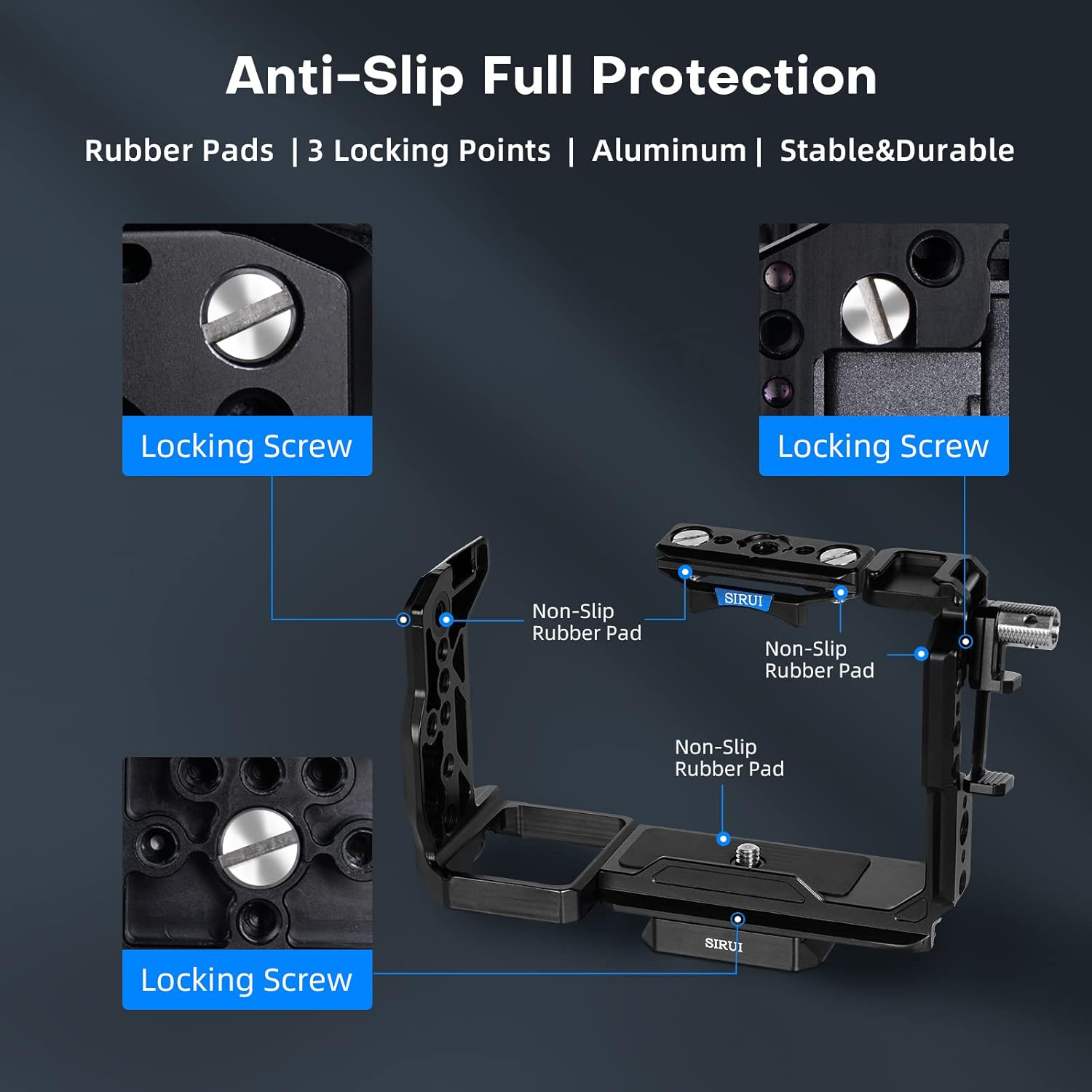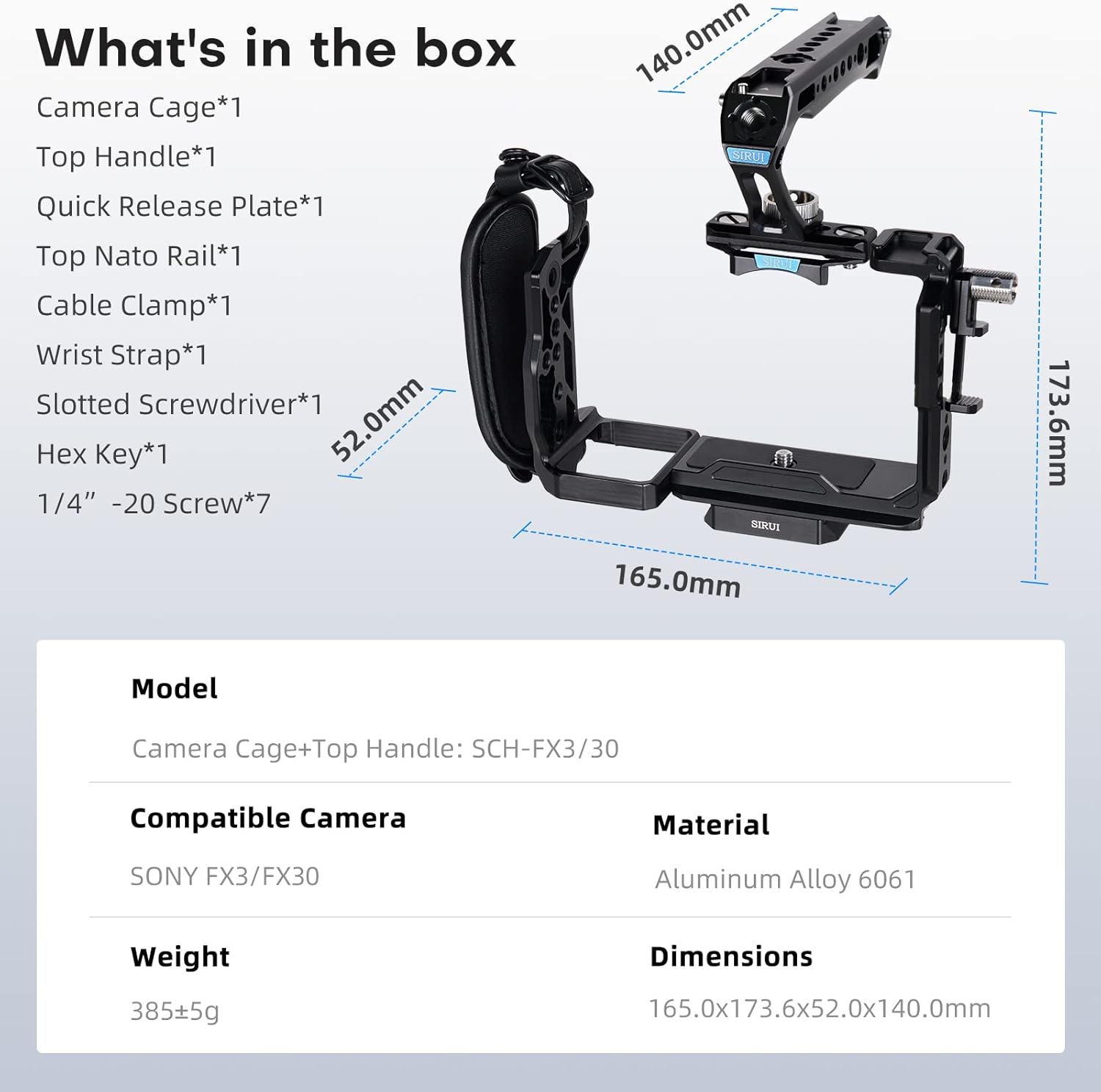 - 【Tailored For SONY FX3/FX30】Dieser Käfig ist speziell für die SONY FX3/FX30 konzipiert. Es kann als Vollkäfig oder Halbkäfig verwendet werden, um viele Befestigungspunkte hinzuzufügen, ohne den Bedienelementen der Kamera im Weg zu sein. Die