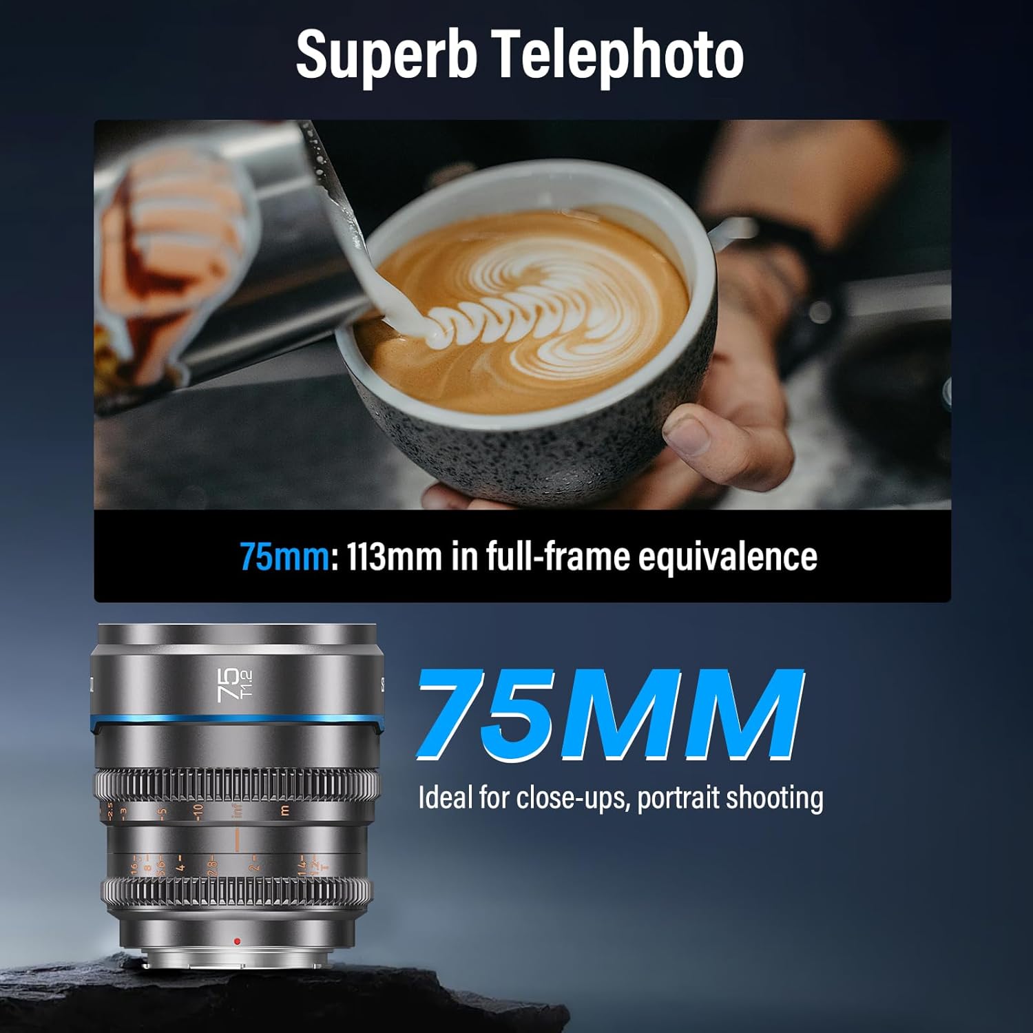 - Modell: SIRUI 75mm T1.2 | Fokuslänge: 75mm | Fassungstyp: X Mount | Frame: APS-C/S35 | Blende: T1.2-T16 | Objektivaufbau: 13 Elemente in 4 Gruppen | Blendenlamelle: 18 | Minimaler Fokusabstand: 0,7m | Filterspezifikation: M67*0,75 | Drehwinkel des
