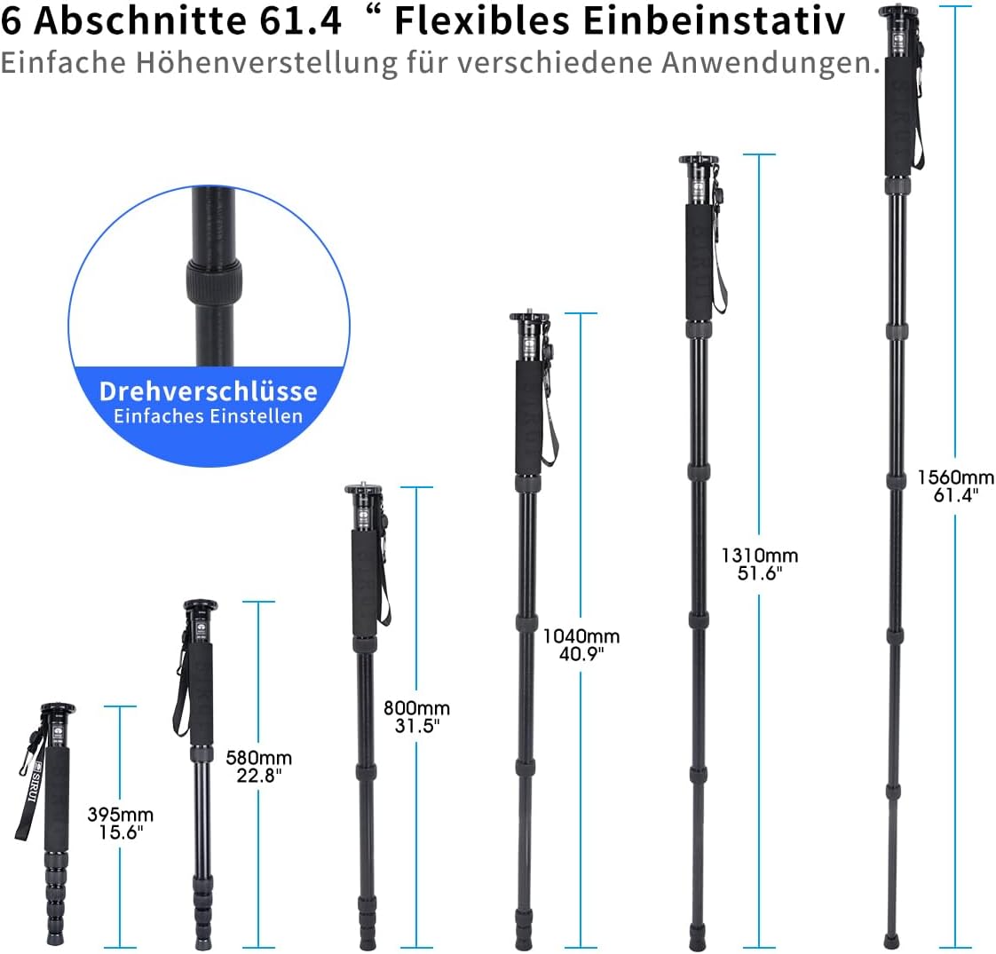• Stabiles Einbeinstativ: Das aus hochfestem Aluminium gefertigte SIRUI P-306 Einbeinstativ ist ultraleicht und langlebig. Belastbar bis zu 22lbs/10kg.