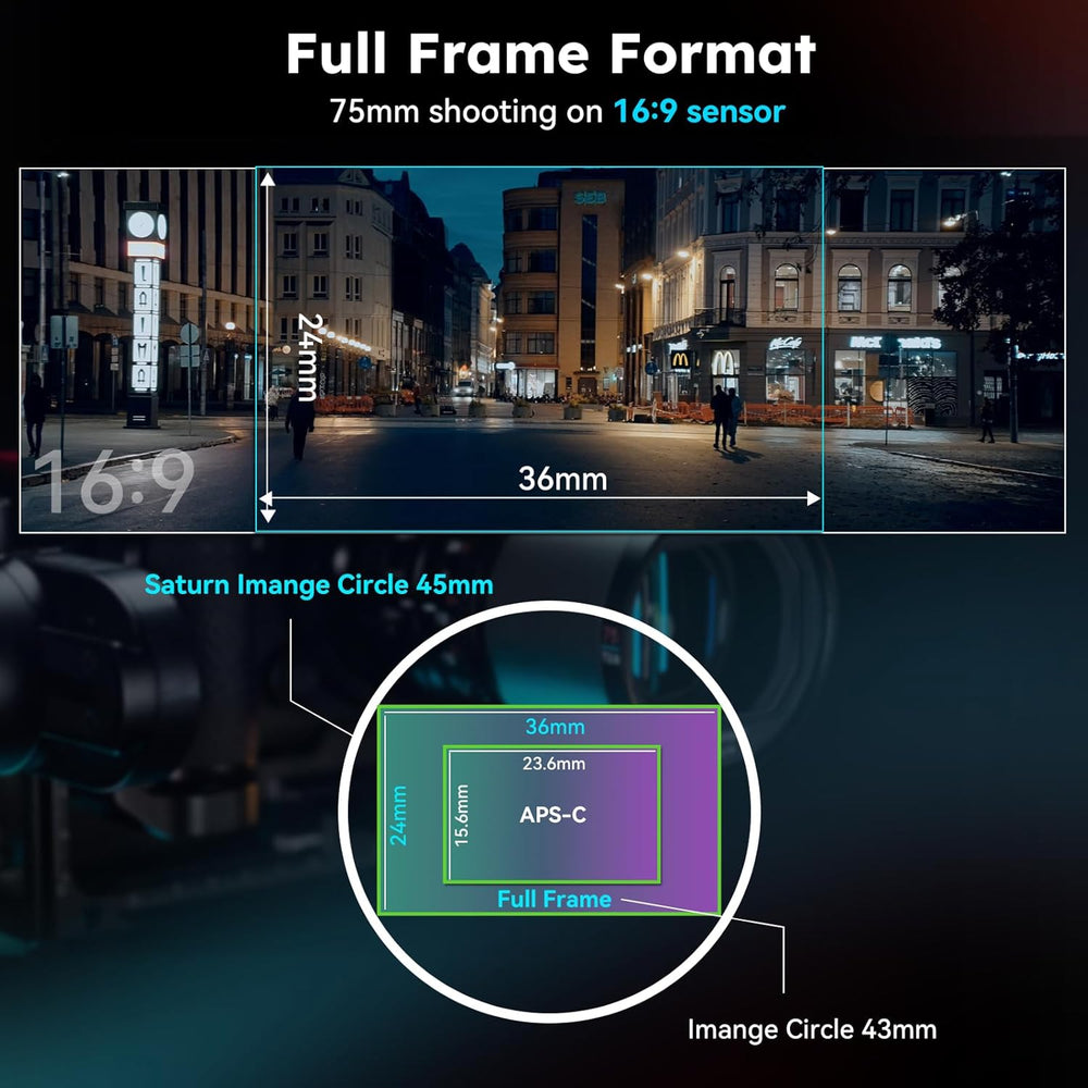 - Kleinstes und leichtestes Kohlefaser-FF-Objektiv: Dieses 1,6-fach anamorphotische Objektiv ist mit sphärischen Elementen und einer Kohlefaserkonstruktion ausgestattet, um chromatische Aberration zu eliminieren und die Gesamtgrösse und das Gewicht des