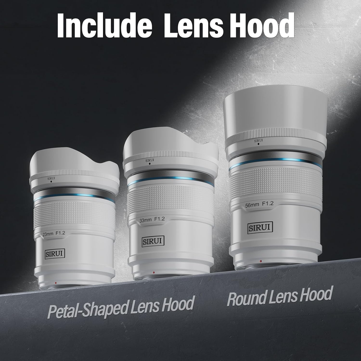 • Enthält eine blütenförmige Gegenlichtblende für 23 mm/33 mm Brennweitenobjektive und eine runde Gegenlichtblende für 56 mm Brennweitenobjektiv, um die Vignettierung zu reduzieren und unerwünschtes Streulicht vom Eindringen in das Objektiv zu