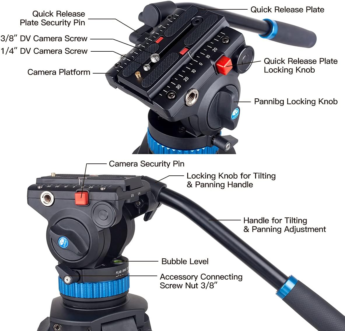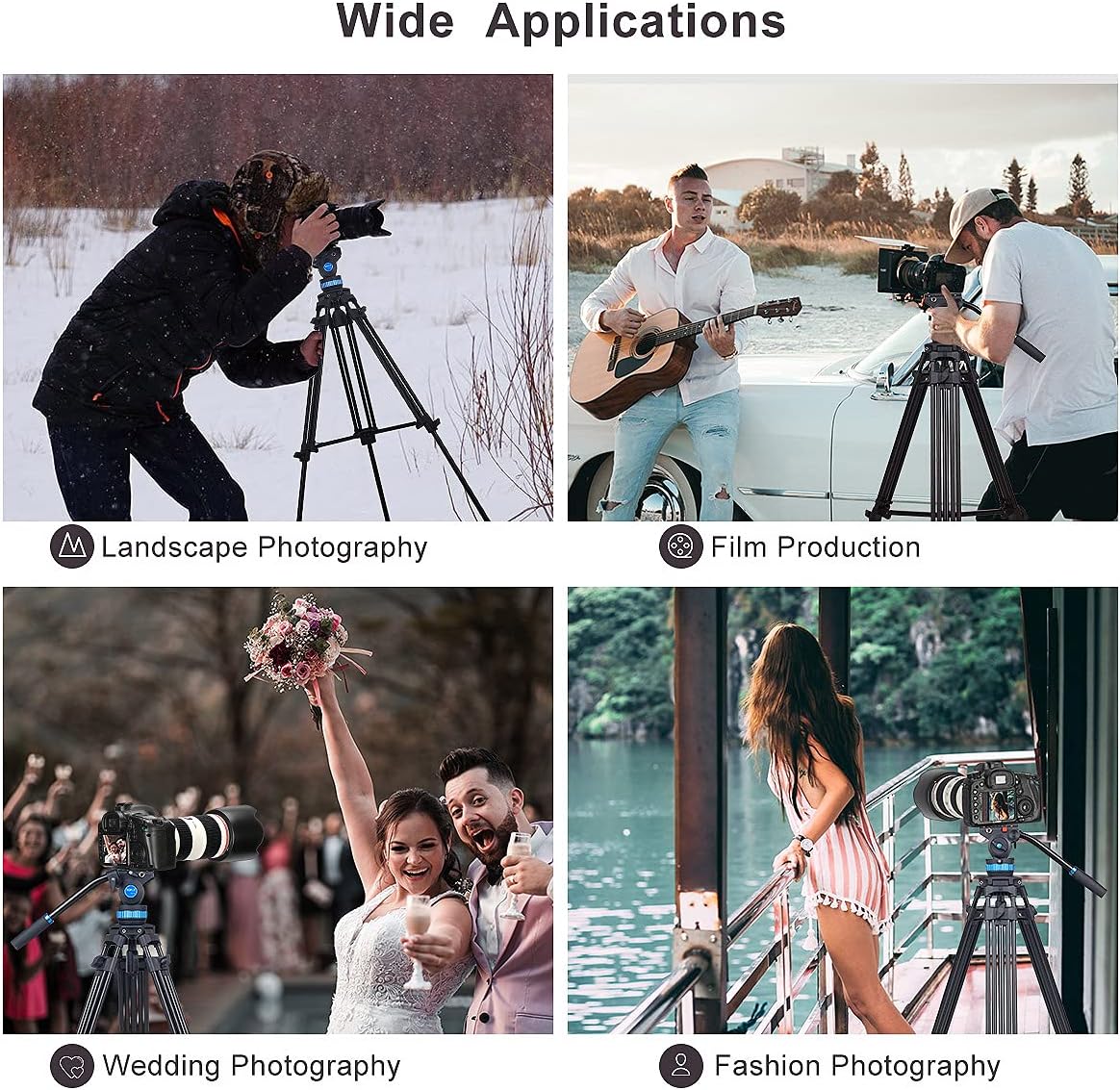 - 【Smooth Fluid Head】Mit dem dynamischen Ausgleichssystem von 360° stufenloser Schwenkung und -75° bis +90° stufenloser Neigung bietet der Fluidkopf dem Benutzer eine reibungslose und schnelle Winkeleinstellung, die es einfach macht,