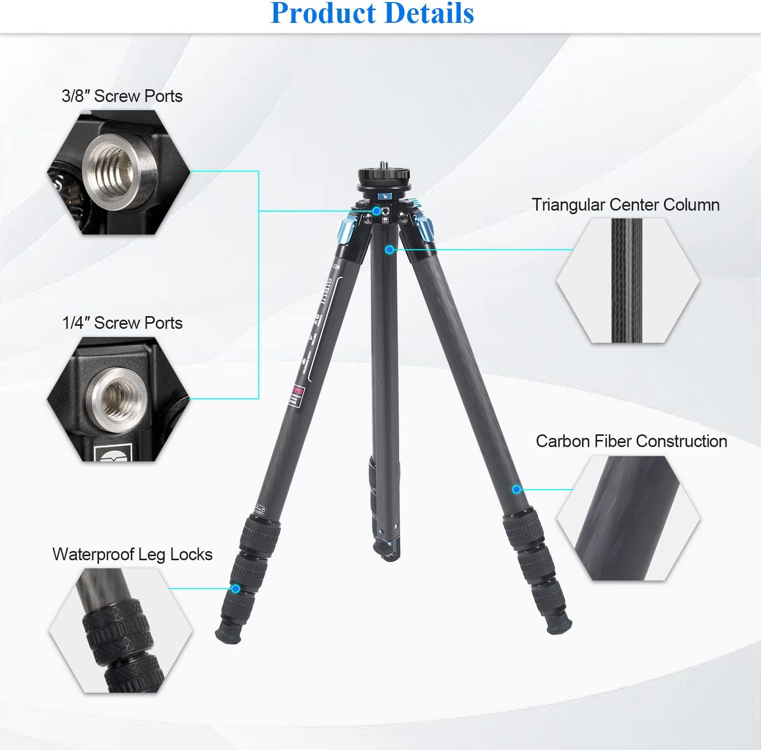 - Spezielle Verarbeitung: Das ST-224-Stativ bietet eine höhere Stabilität für spiegellose oder DSLR-Kameras. Der grosse Beindurchmesser erhöht die Festigkeit der Carbonschichten.