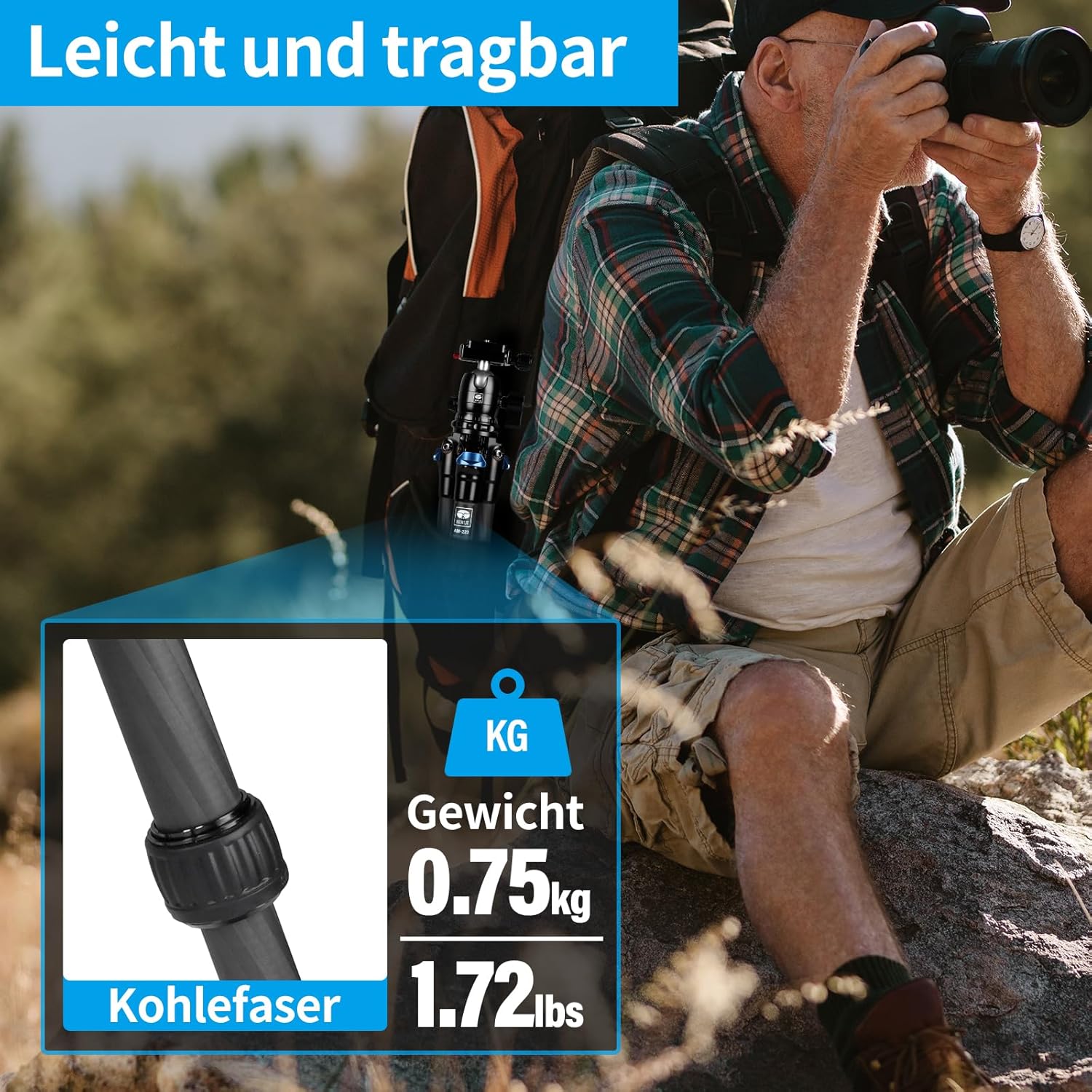 - Tragbar und leicht: Das gesamte Set wiegt nur 1.28kg, daher sehr einfach überall zu tragen und geeignet zum Schiessen von Insekten und Pflanzen. Ausser dem leichten und tragbaren Material verfügt dieses SIRUI Mini-Stativ auch über eine ausgezeichnete