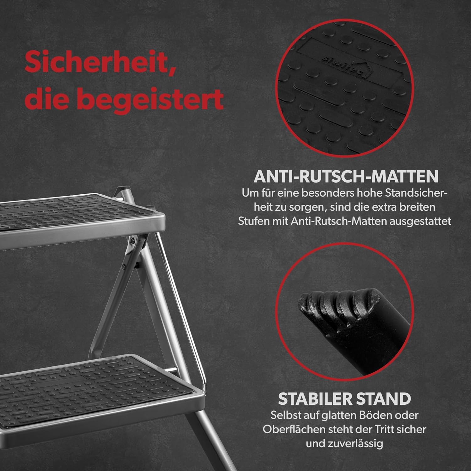 - PERFEKTER ALLROUNDER - Der 2-stufige siwitec Mini-Klapptritt in Anthrazit mit TÜV/GS-Zertifikat ist ein Musthave in jedem Haushalt