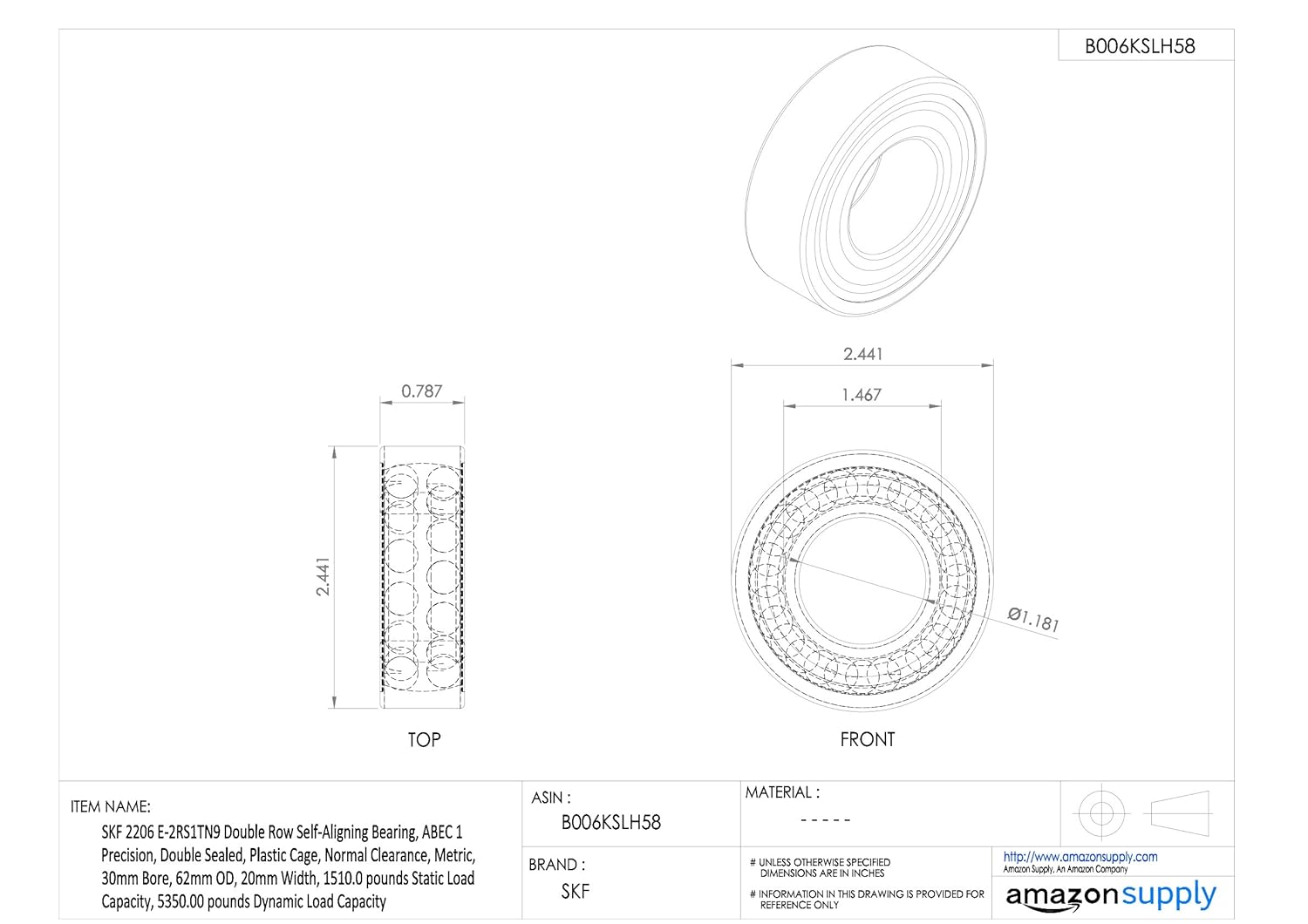 - Bohrung/Innendurchmesser: 30; Korpus Aussendurchmesser: 62; Breite/Stärke: 20; Toleranzgruppe: Normal (PN); Radialer Innenabstand / Vorlastgruppe: CN