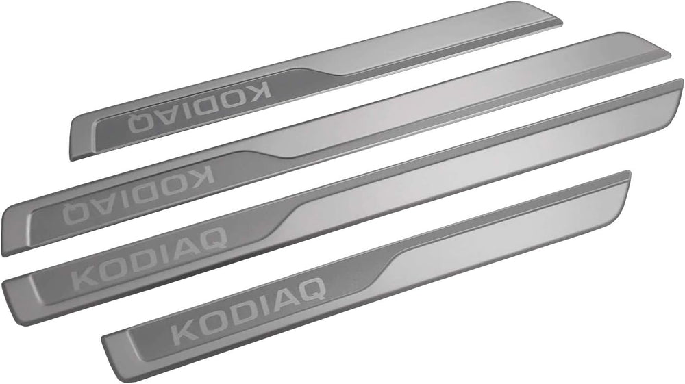 - Design: mit Kodiaq Schriftzug auf den vorderen und hinteren Leisten, Montage: selbstklebende Rückenbeschichtung, Material: Aluminium, Farbe: silber