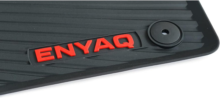 - Design: mit rotem ENYAQ Schriftzug auf den vorderen und hinteren Fussmatten | schützen den Fahrgastraum vor Nässe und Schmutz | Befestigungssystem: Druckknopf (rund) | Material: TPE (thermoplastisches Elastomer) | Farbe: schwarz, rot