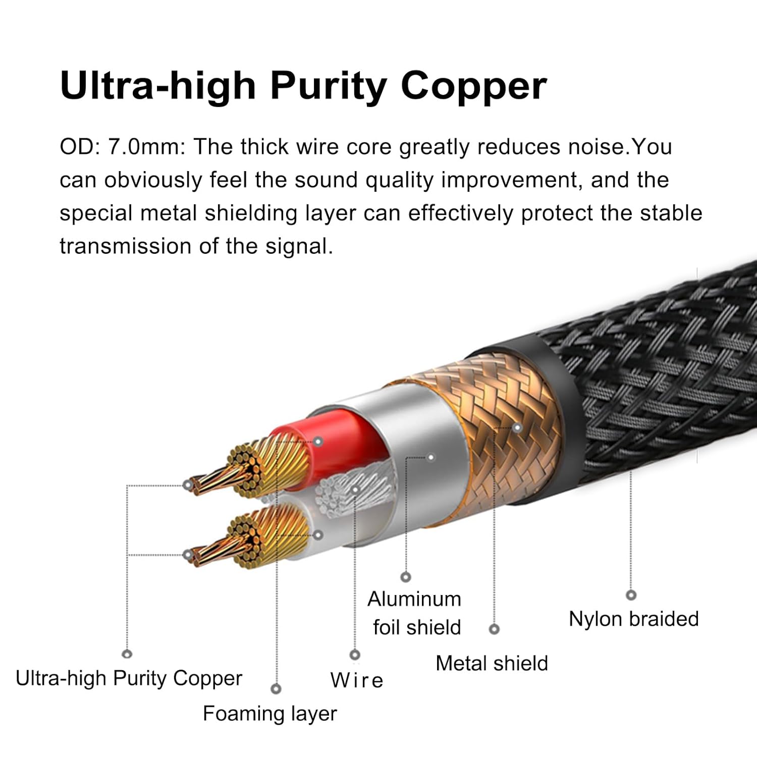 - OD: 7,0 mm: Der dicke Drahtkern reduziert das Rauschen erheblich. Sie können die Verbesserung der Klangqualität offensichtlich spüren, und die spezielle Metallabschirmschicht kann die stabile Übertragung des Signals wirksam schützen.