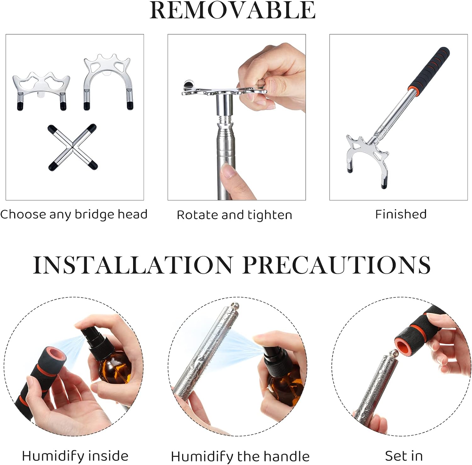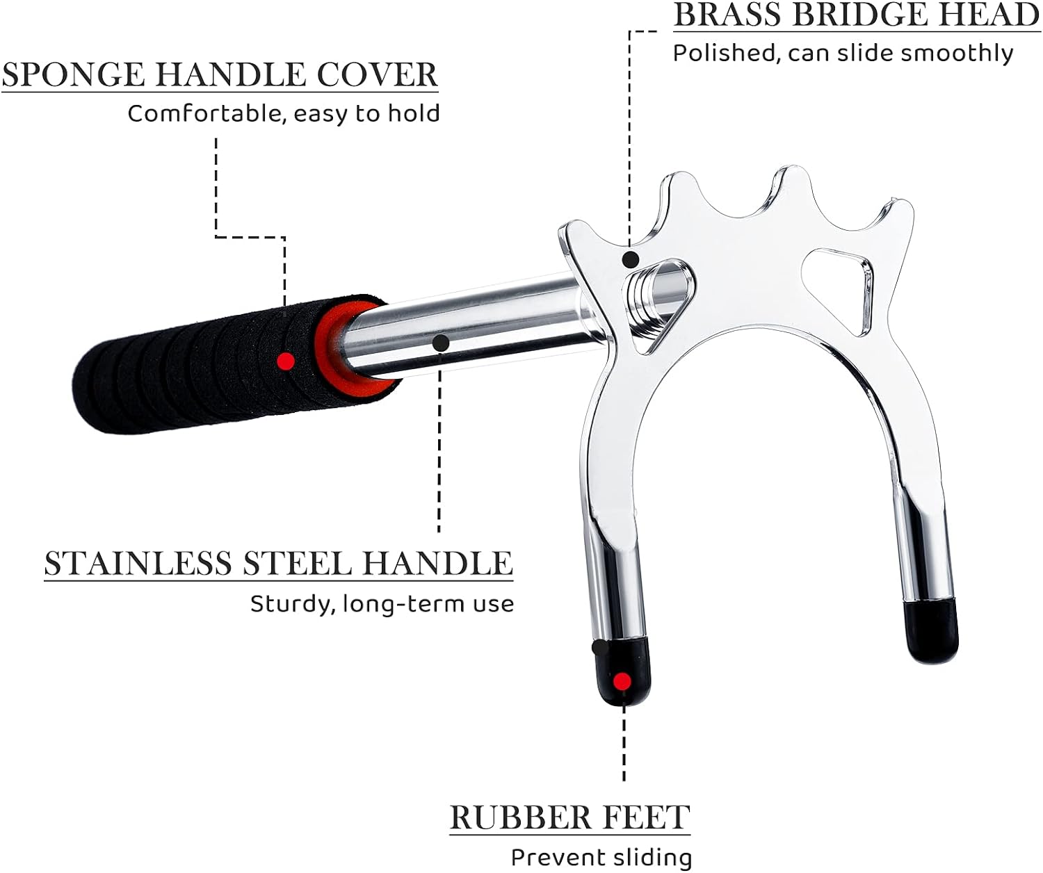 - Austauschbare 3 Arten von Brückenköpfen: Es gibt 3 Arten von Brückenköpfen, einschliesslich hoch, niedrig und quer, alle aus Messing, und die Oberfläche ist poliert, um ein einfaches und reibungsloses Gleiten zu gewährleisten; Und die Brücke ist