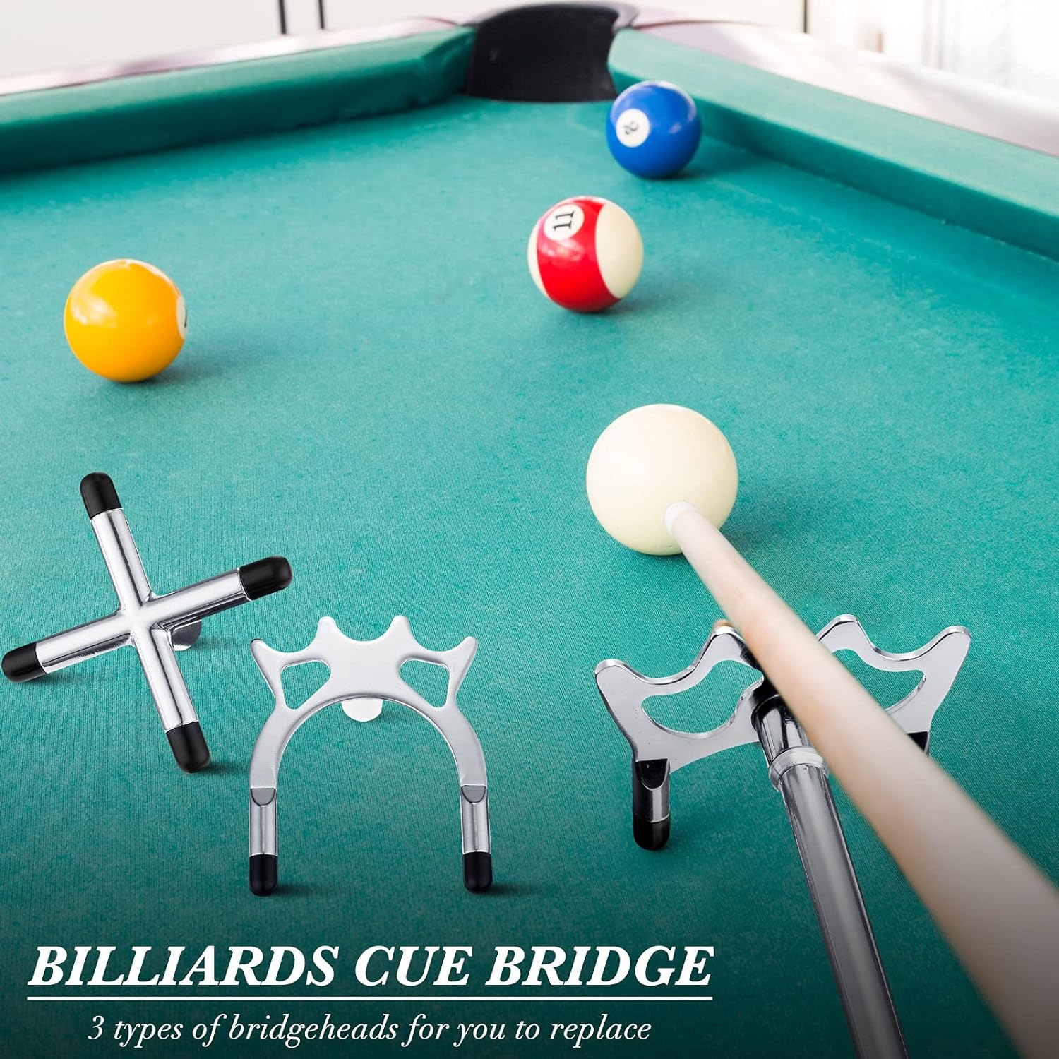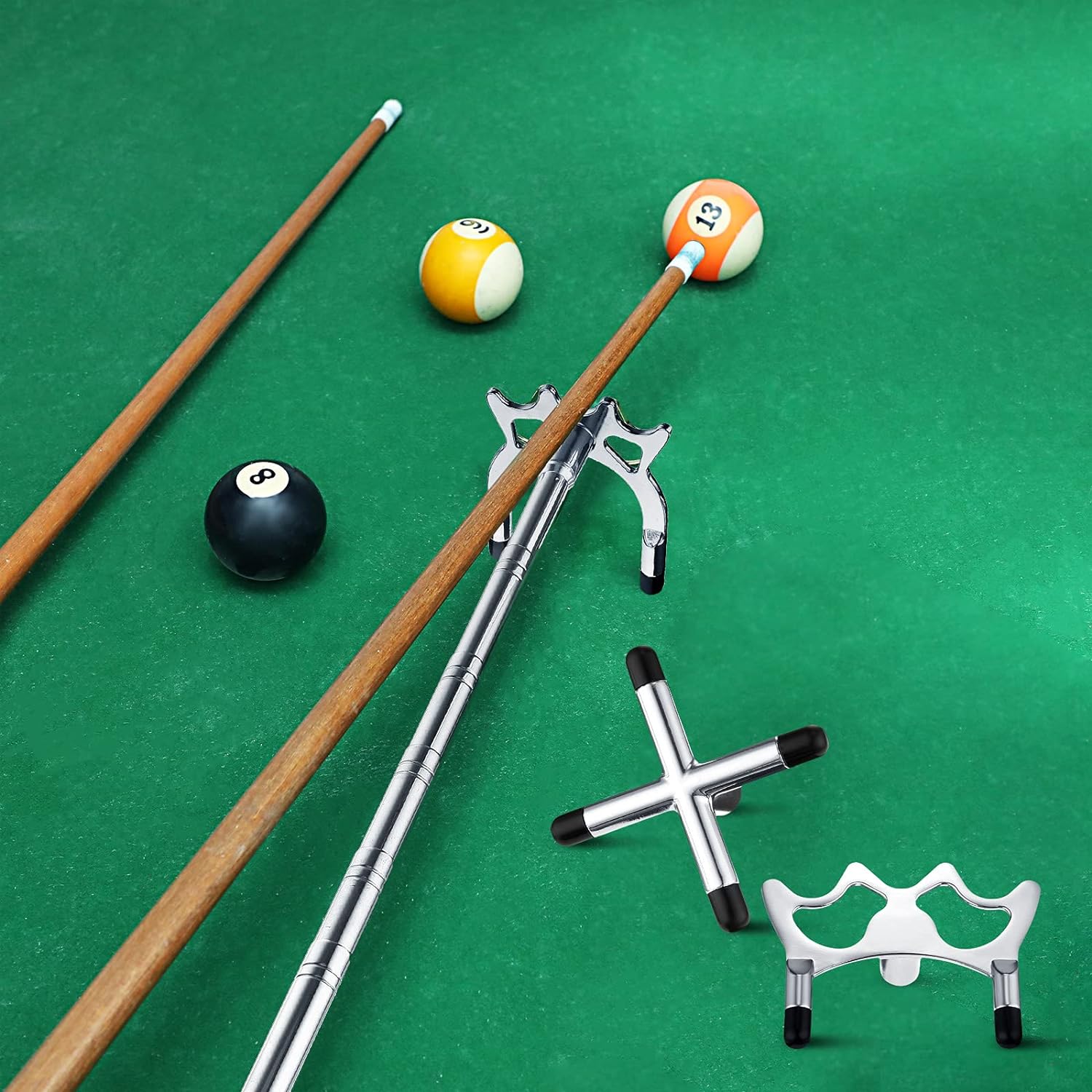 - Einziehbares Billard-Queue-Brücken-Kit: Sie erhalten 1 Stück Billard-Queue-Brücke mit 3 Stücke abnehmbarem Messing-Brückenkopf, mit dem Sie von 35 cm/ 14 Zoll auf 150 cm/ 59 Zoll ausziehen können, geeignet für die meisten Arten von Billard-Queues