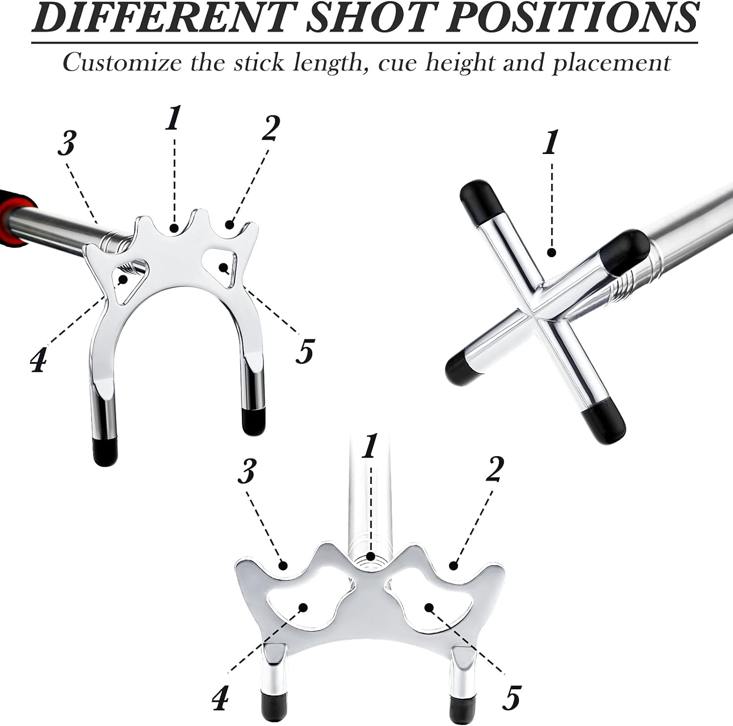 - Bietet 5 Schusspositionen: Der Brückenkopf des Billardqueuehalters kann 5 Schusspositionen bieten, sodass Sie die Stocklänge, Queuehöhe und Platzierung selbst einstellen und dann einen guten Schlag spielen können