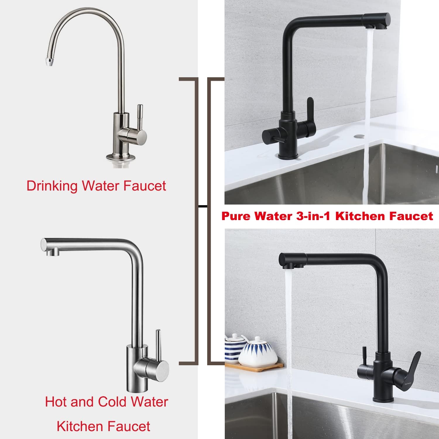- ✅. 3-in-1 Küchenarmatur bietet mehrere Zwecke und nur ein Montageloch ist erforderlich, um Platz in der Spüle zu sparen. Es kann kaltes Wasser, heisses Wasser und gefiltertes Wasser zur Verfügung stellen. Durch den Anschluss der