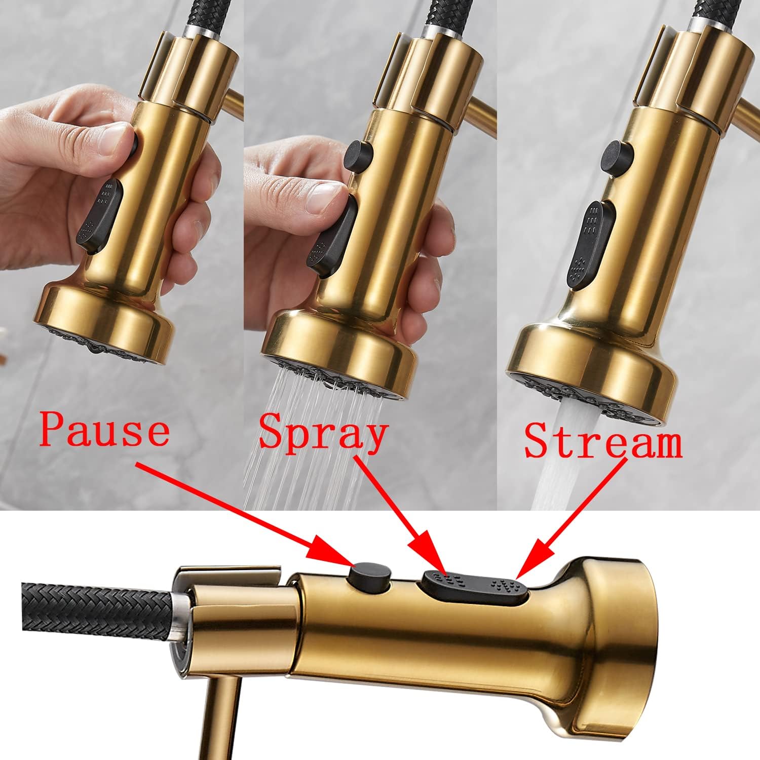 - ✅. Einfach zu bedienen, drei Arten von Wasserauslassfunktionen (Stream, Spray, Pause), Stream zum Einfüllen von Wasser, Spray zum Spülen, Pause, um Spritzer im Multitasking-Modus zu vermeiden, und multifunktionale Umschaltung, um alle Anforderungen