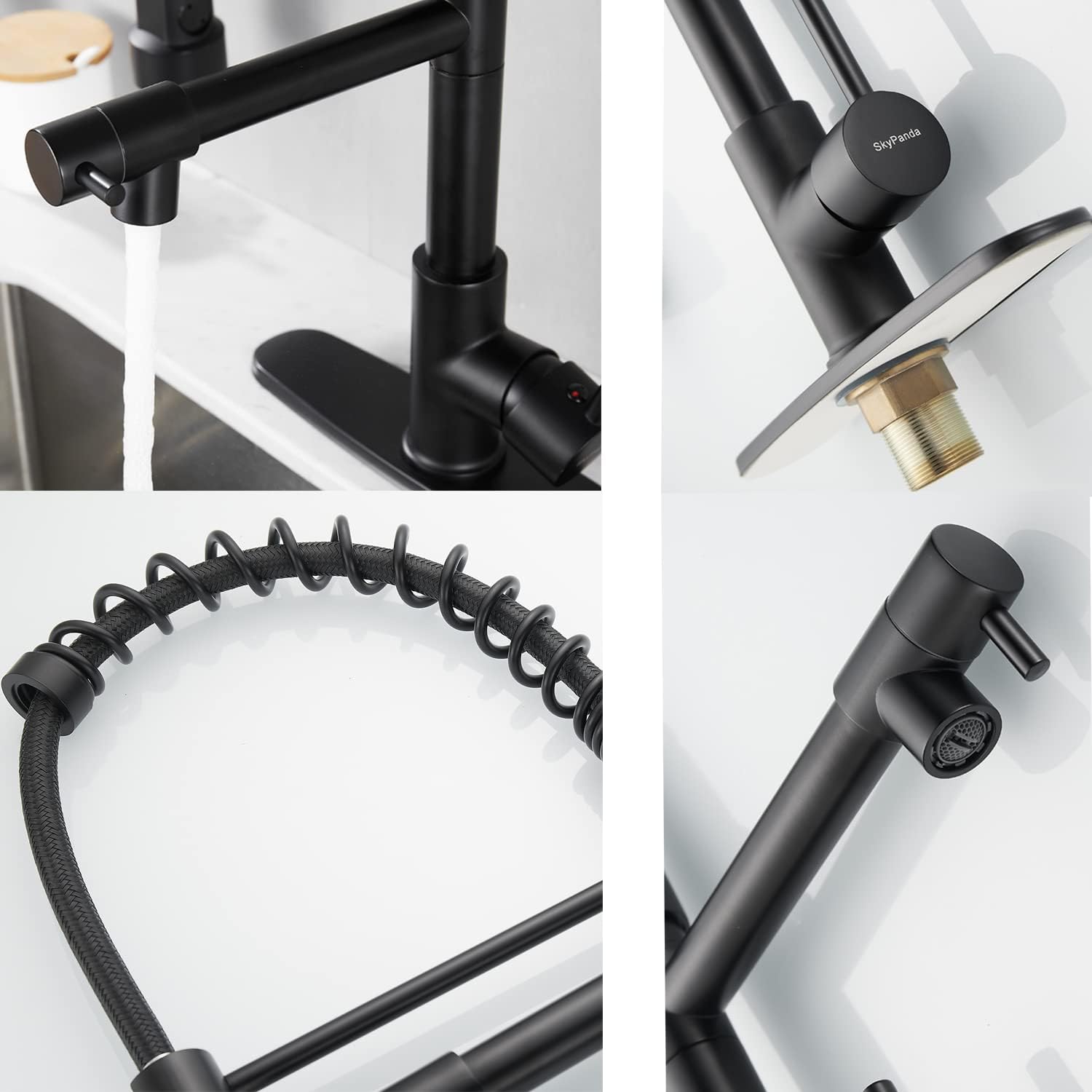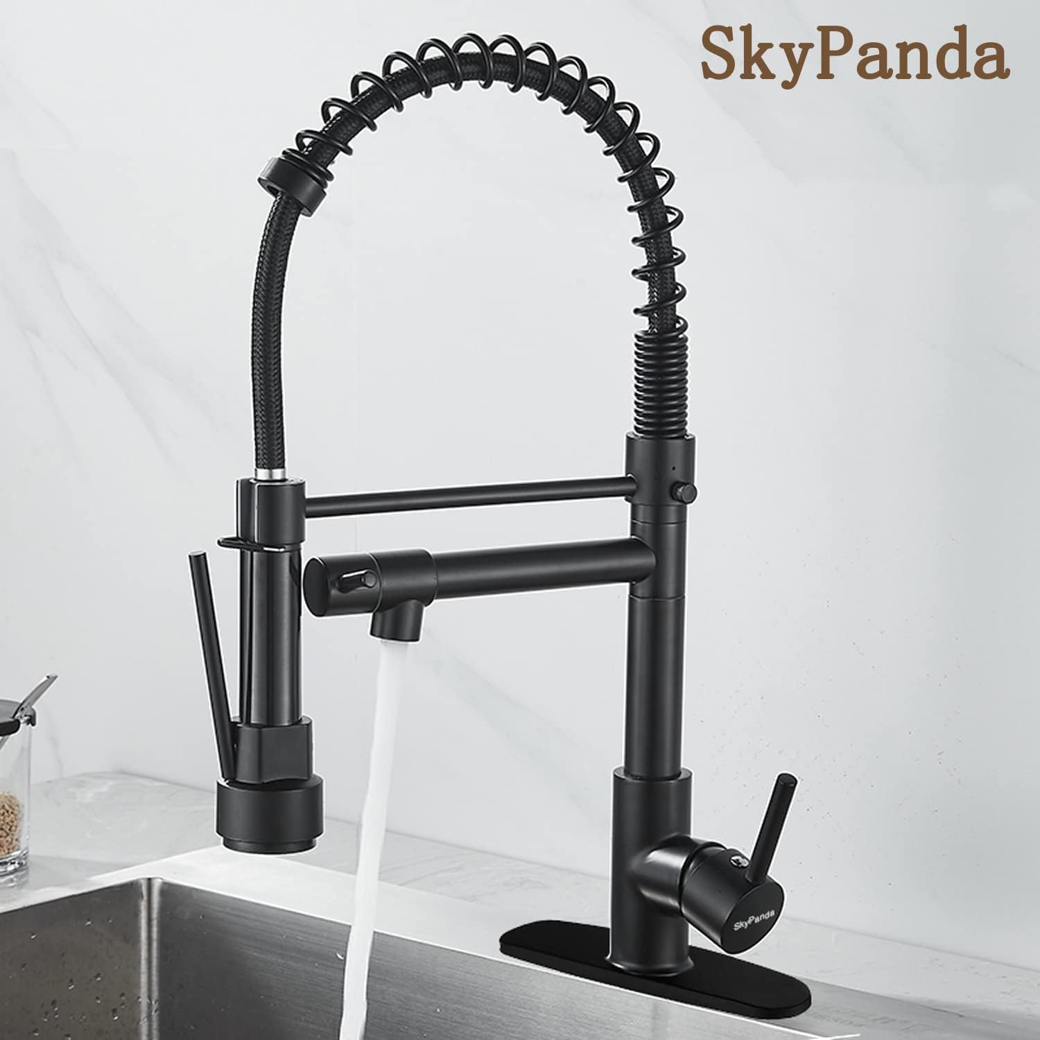 SkyPanda Küchenarmatur, schwarze Küchenarmatur 360° drehbar mit herunterziehbarem Sprühkopf, Vollkup