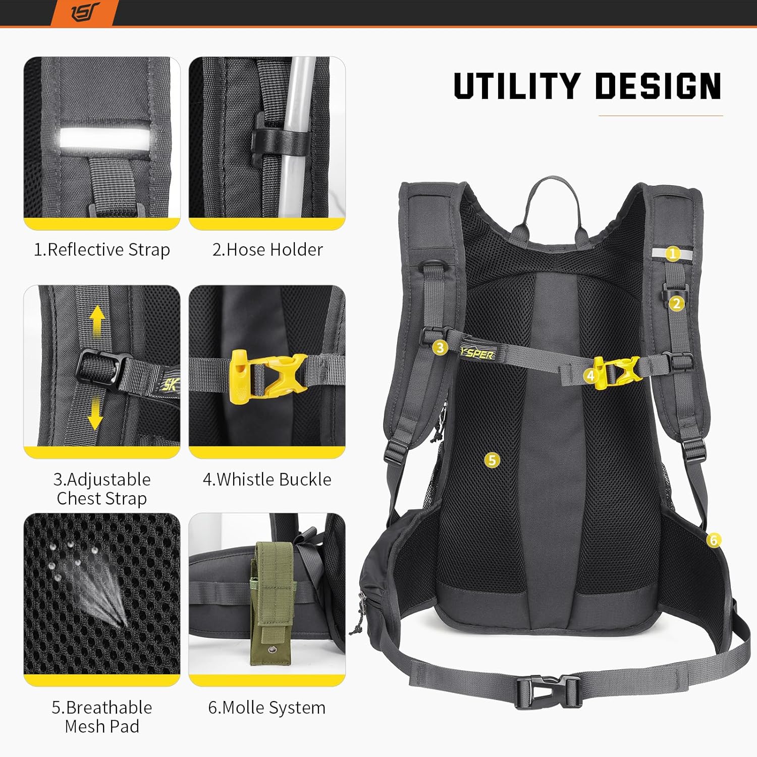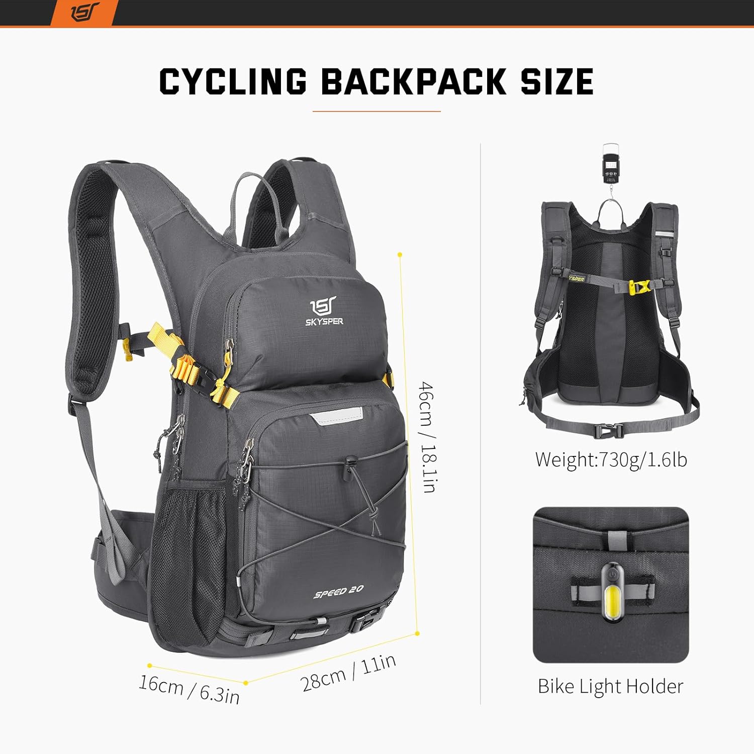 - PREMIUM QUALITÄT: Der ISPEED 20 Fahrradrucksack besteht aus 210D Ripstop-Nylon und hochdichtem 600D Polyester, das Gewebe ist leicht, wasserfest, reissfest und abriebfest. und alle Stresspunktnähte des Rucksack und die Schultergurte sind mit Riegeln