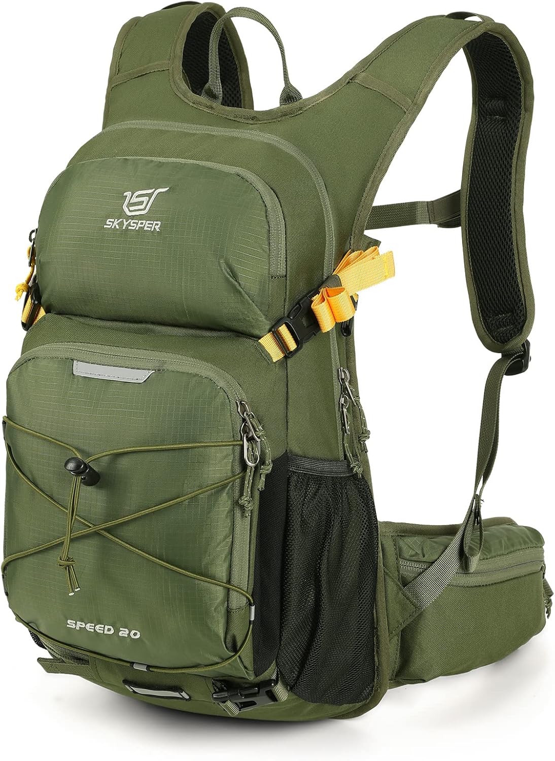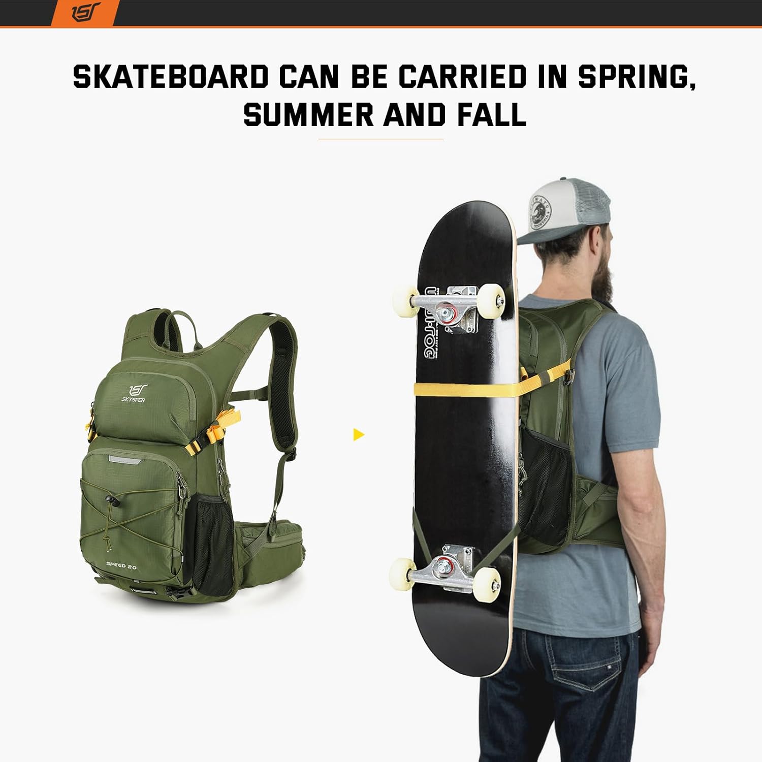 - PREMIUM QUALITÄT: Der ISPEED 20 Fahrradrucksack besteht aus 210D Ripstop-Nylon und hochdichtem 600D Polyester, das Gewebe ist leicht, wasserfest, reissfest und abriebfest. und alle Stresspunktnähte des Rucksack und die Schultergurte sind mit Riegeln