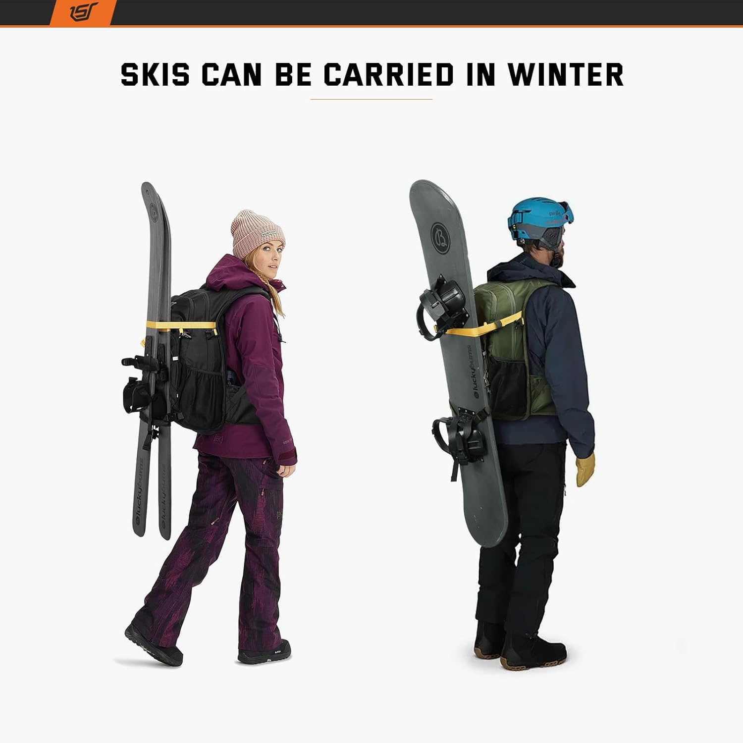 - Rad- & Skifahren: Der Platz vor dem Rucksack kann durch die Knöpfe auf beiden Seiten eingestellt werden, mit denen der Reithelm befestigt werden kann; Gleichzeitig kann es verwendet werden, um das Skateboard oder Snowboard zu befestigen, indem die