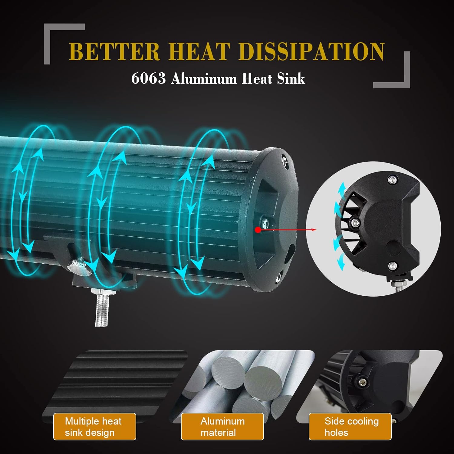 - Robustes Design: Schwarz lackiertes, hochwertiges Aluminiumgehäuse, verstellbare Halterung aus Edelstahl und bruchsichere Linsen mit IP67, wasserdicht, langlebig, um allen rauen Bedingungen standzuhalten.
