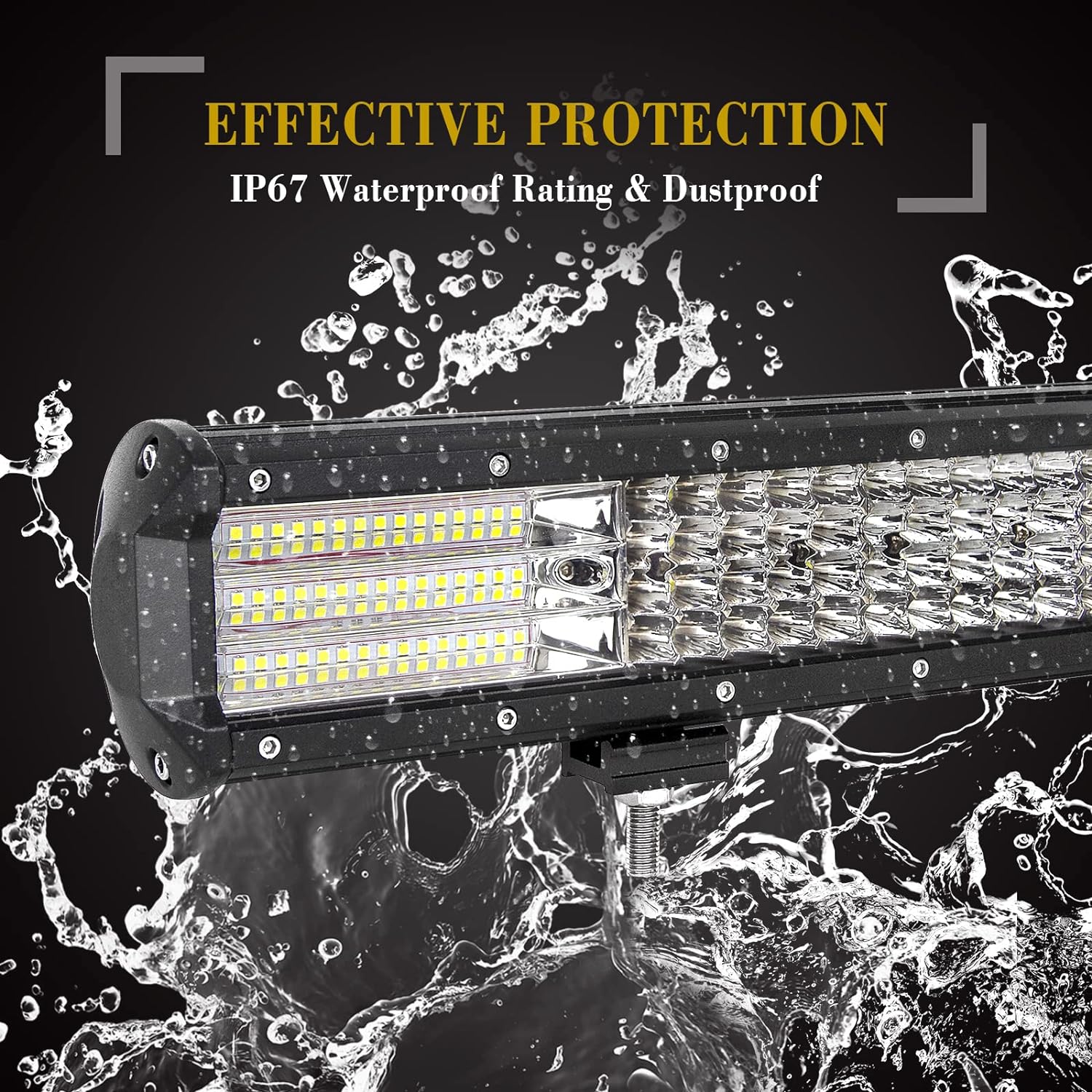- Superheller 4-reihiger Punktstrahl in der Mitte, 3-reihiger Flutstrahl in zwei seitlichen LED-Lichtleisten, einschliesslich hochwertiger 3-Watt-LEDs, 6000K Bernsteinlicht. Umweltfreundlich, geringer Stromverbrauch, 30.000 Stunden.