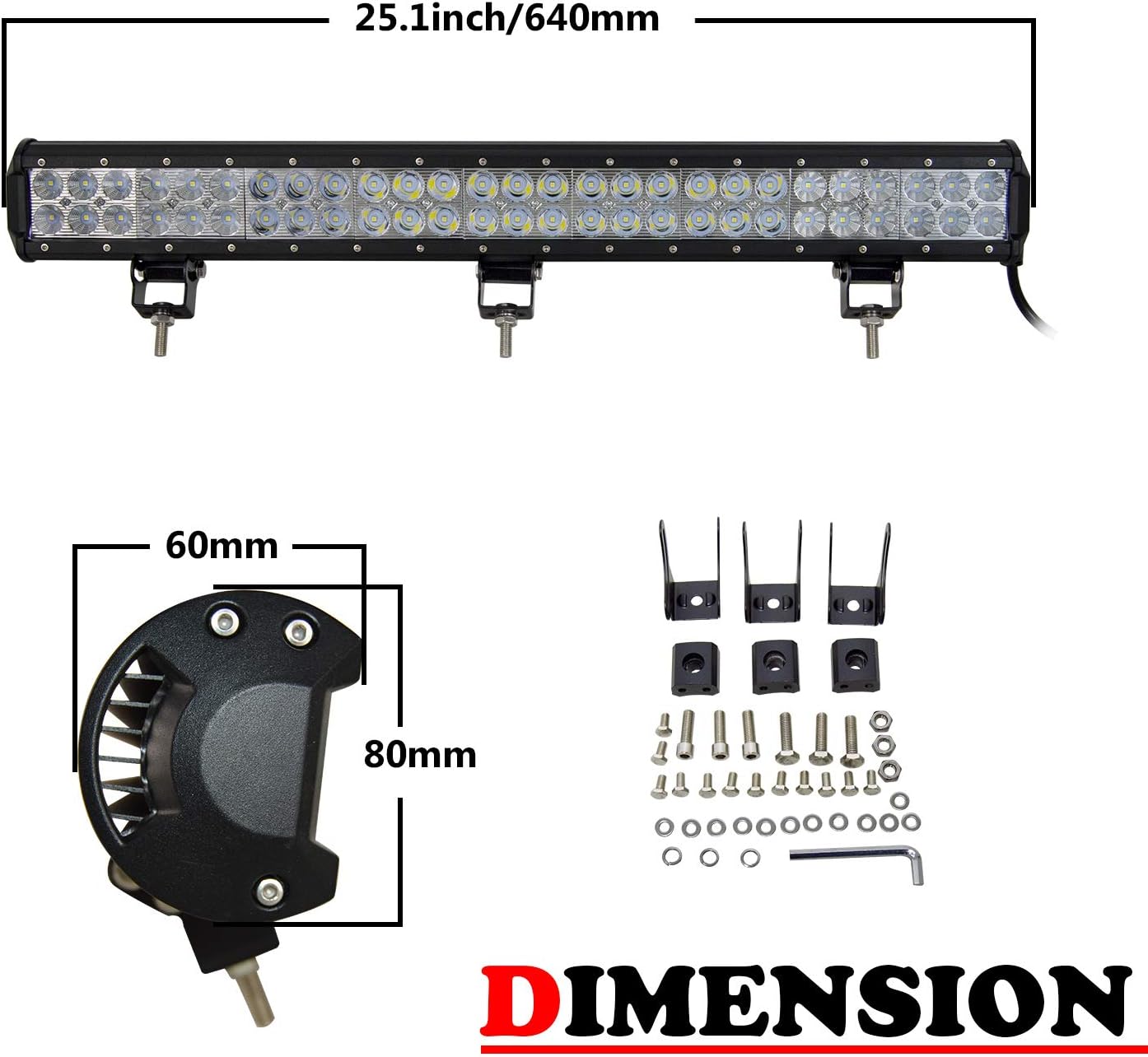 - 【Combo Beam Design】 - Spot & Flood Combo Beam. Leistungsstarke LED-Lichtleiste, Punktstrahl für grosse Bestrahlungsentfernung, Flutstrahl für hellen und weiten Sichtbereich. Der Combo Beam bietet Ihnen einen hervorragenden visuellen Effekt.